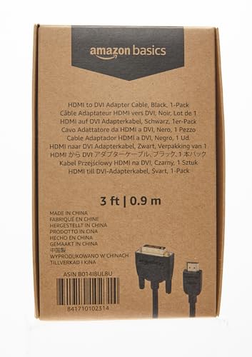 Amazon Basics HDMI-A to DVI (Male) Adapter Cable, Bi-Directional 1080P, Gold-Plated, 3 ft/0.9 m, Single Pack, Black