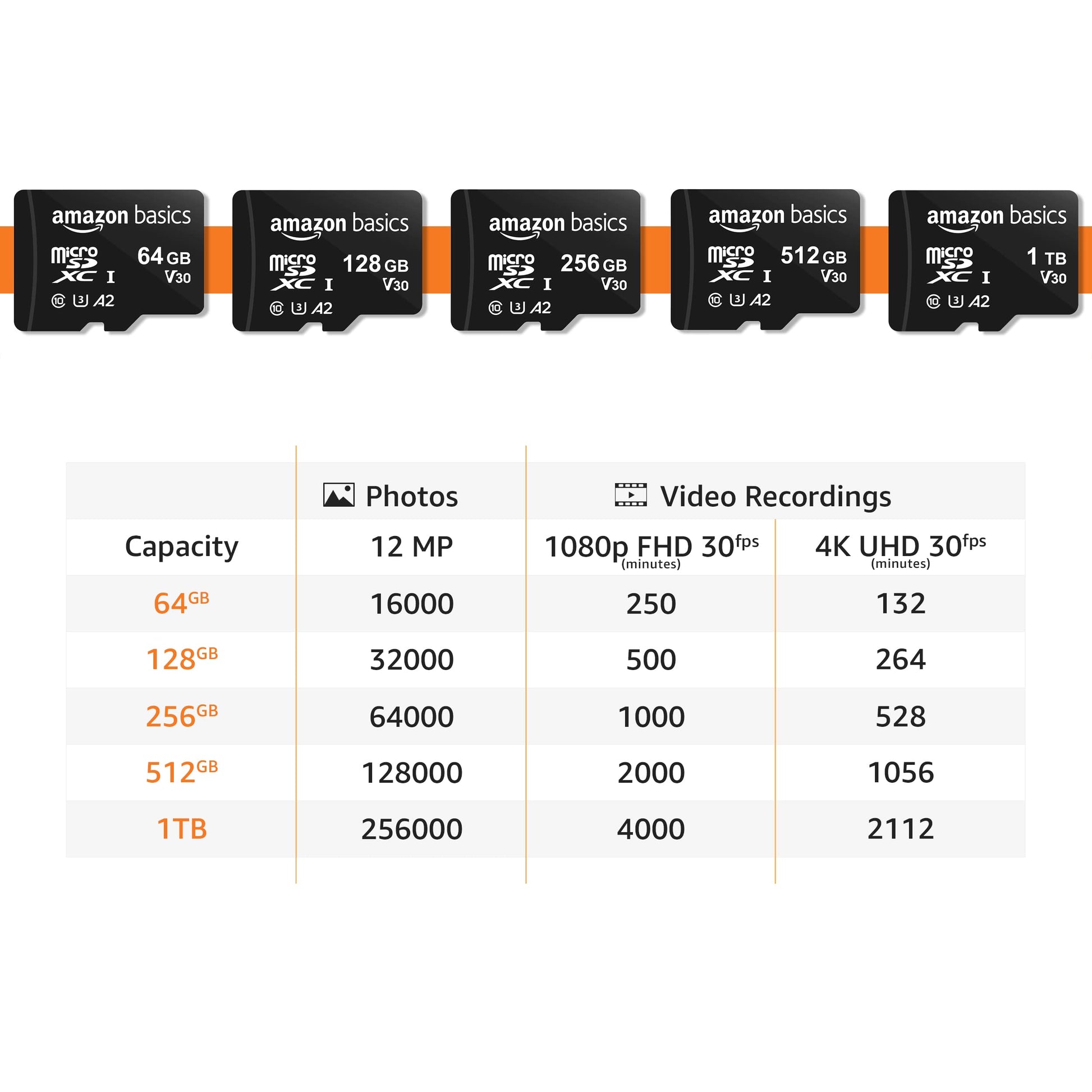 Amazon Basics Micro SDXC Memory Card with Full Size Adapter, A2, U3, Read Speed up to 100 MB/s, 256 GB, Black