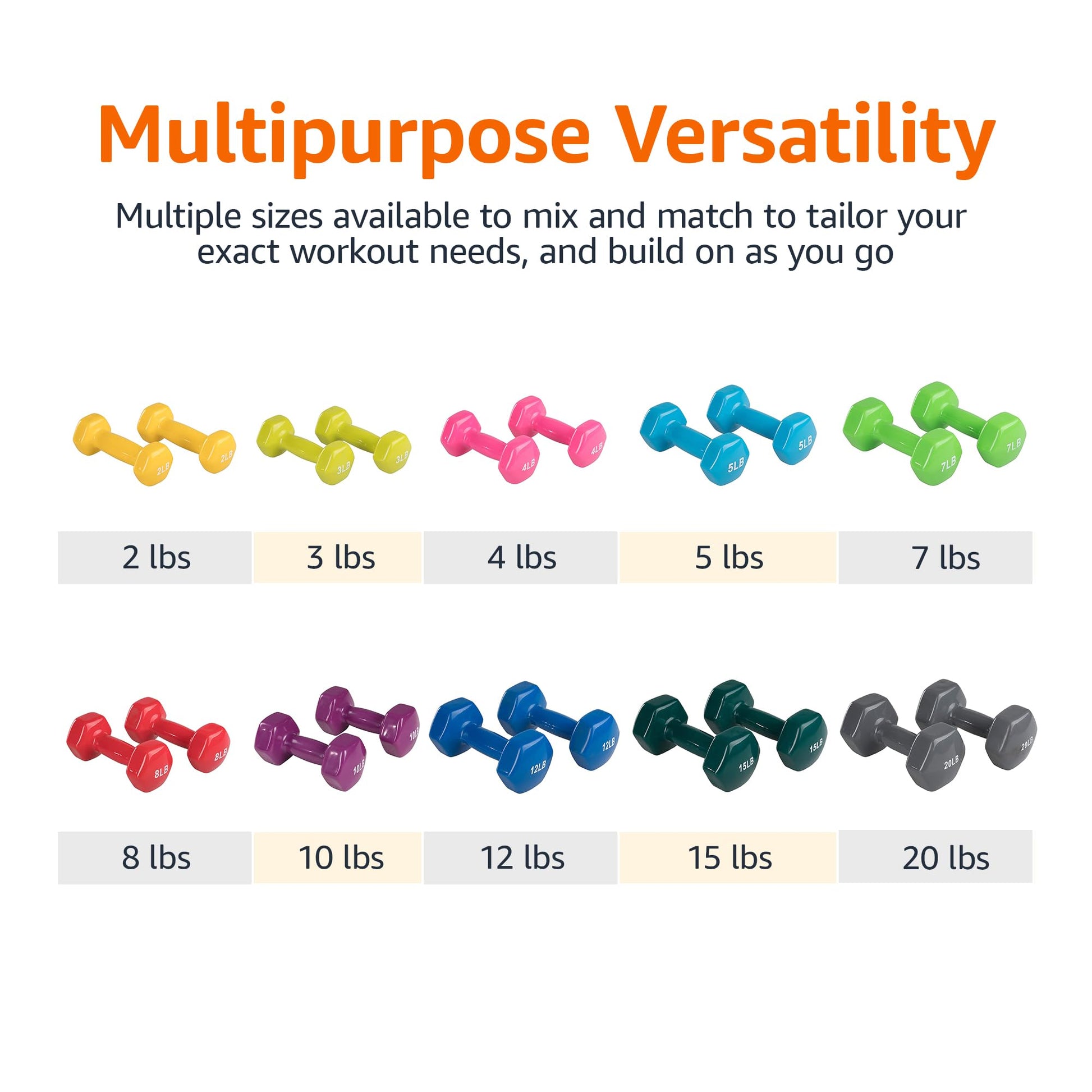 • VERSATILE SIZE OPTIONS: Available in multiple sizes, these dumbbell weights allow you to mix and match according to specific workout needs and to expand your collection over time