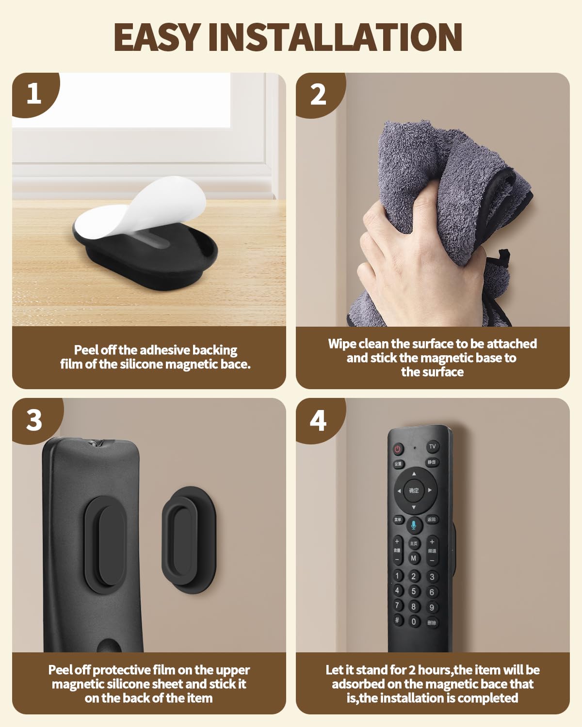 AMAZYC-US 6 Pack Magnetic Remote Control Holder – Upgraded Silicone Magnetic Wall Mount for TV, Fan & Air Conditioner Remotes – Self-Adhesive, No-Drill Remote Control Holder Wall Mount