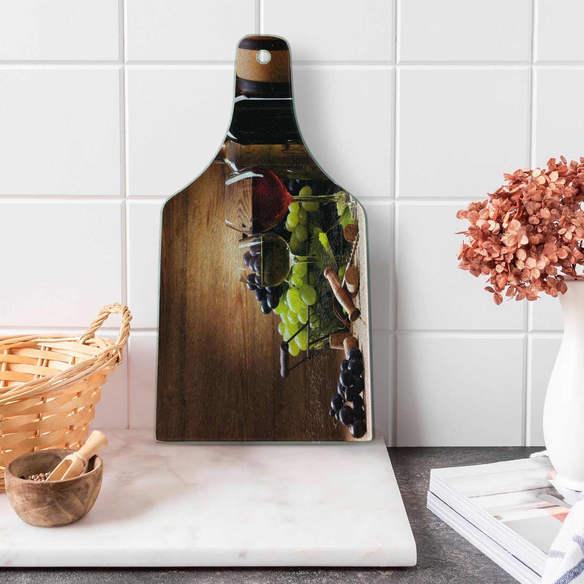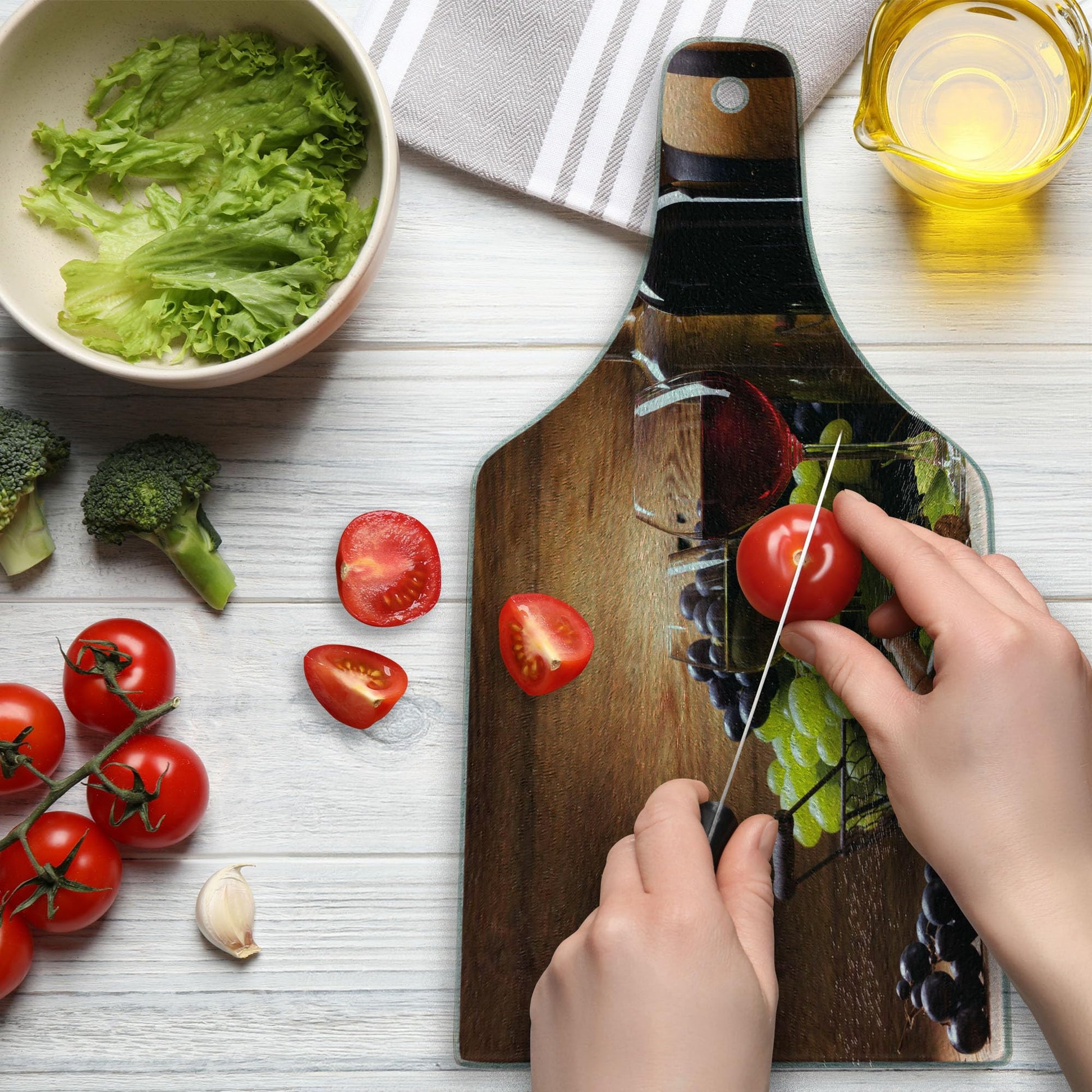 Ambesonne Wine Cutting Board, Glasses of Red and White Wine Served with Grapes French Gourmet Tasting, Decorative Tempered Glass Cutting and Serving Board, Wine Bottle Shape, Brown Ruby
