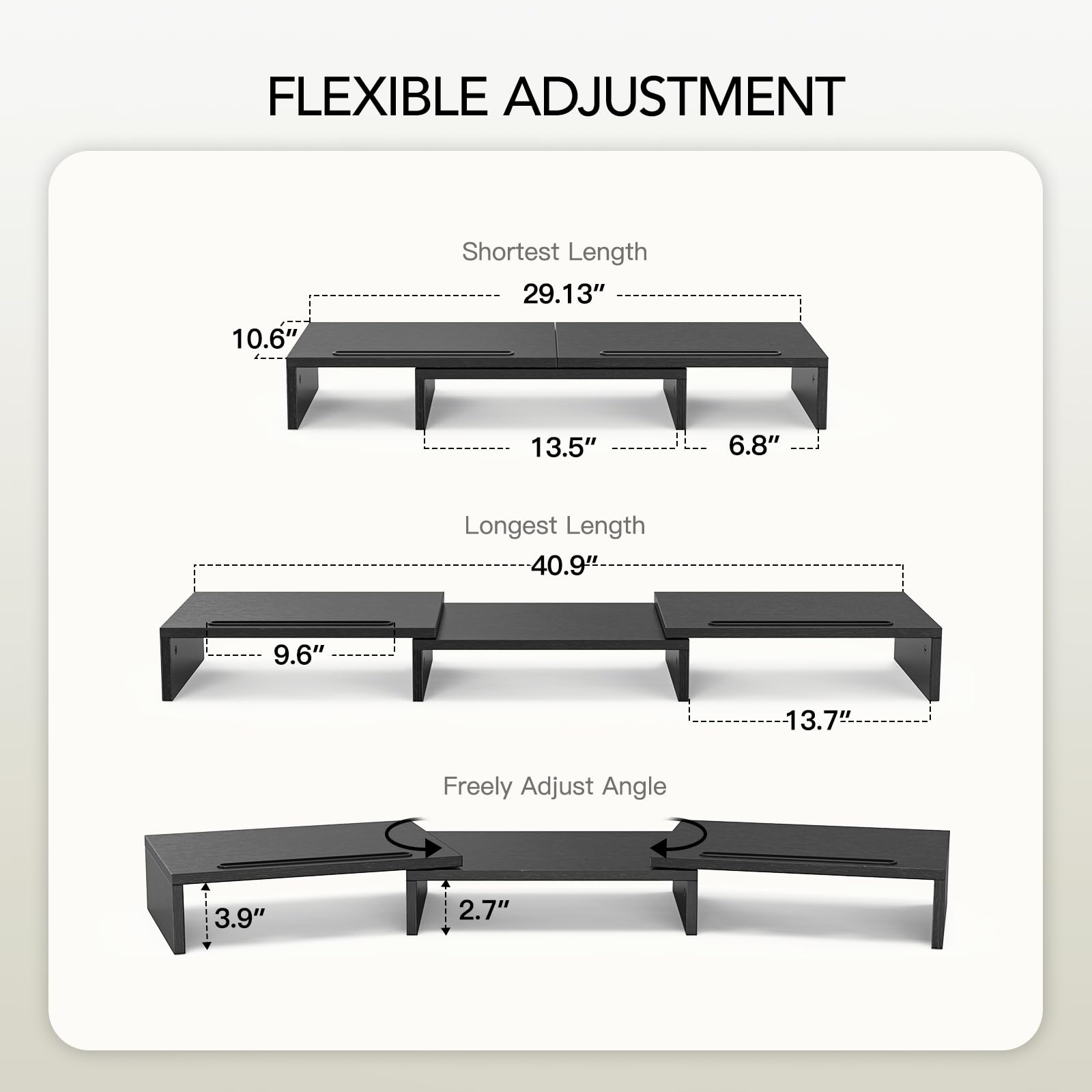 • UPGRADED PRODUCT DIMENSION: This monitor stand riser maximum 40.9 inch in length, holds up to 55 lbs, both increased by 15%. This dual monitor riser brings you a more convenient home and office life.