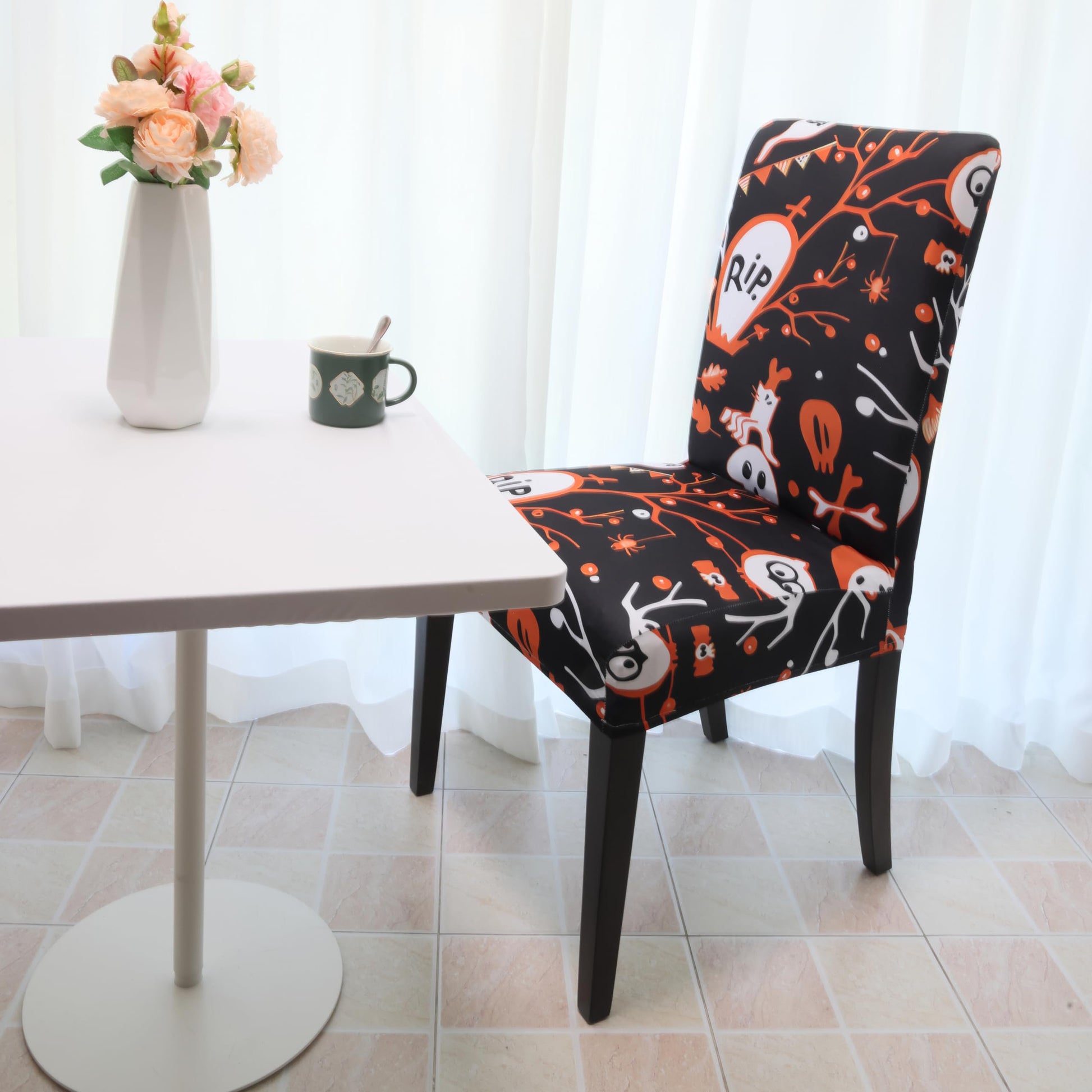• Material: Our dining chair slipcover for dining chairs are NOT VINYL, made of spandex, soft and elastic 90% polyester and 10% spandex blend fabric. The armless chair covers will perfectly wrap your chairs. The stretch dining chair slip covers are machine washable, wrinkle-resistant, stain-resistant, can be reused and do not fade. The delicate pattern of these halloween parson chair slipcover is digitally printed in a way that makes them machine washable at low temperatures without fading.