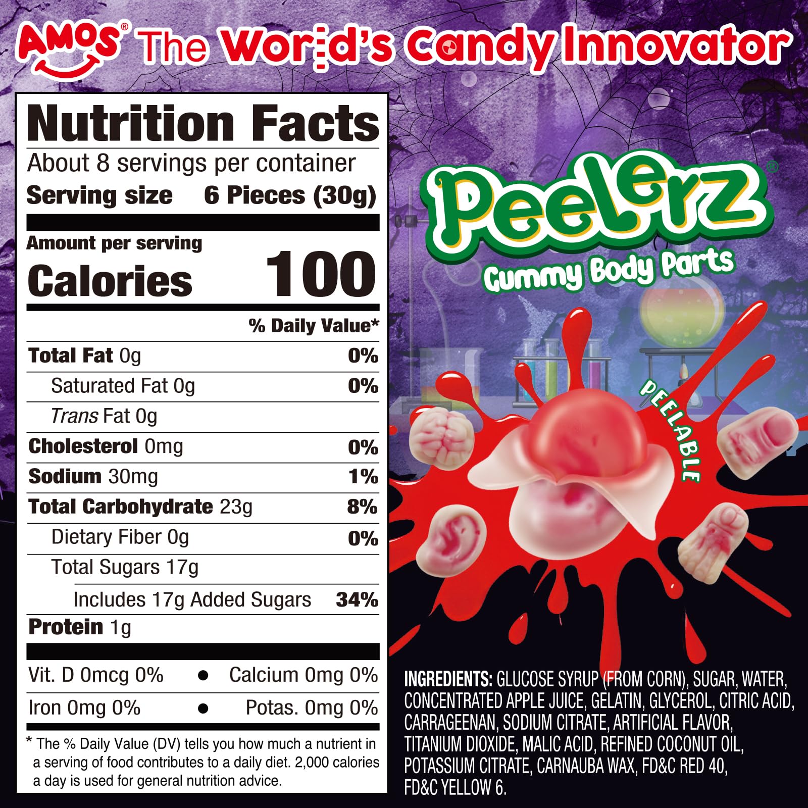 AMOS Halloween Peelerz Body Parts Gummies Candy - Party Treats & Trick or Treat Favors for Kids, Fun Snacks for Adults, Individually Wrapped Pieces, 240g (8.47oz) Bag