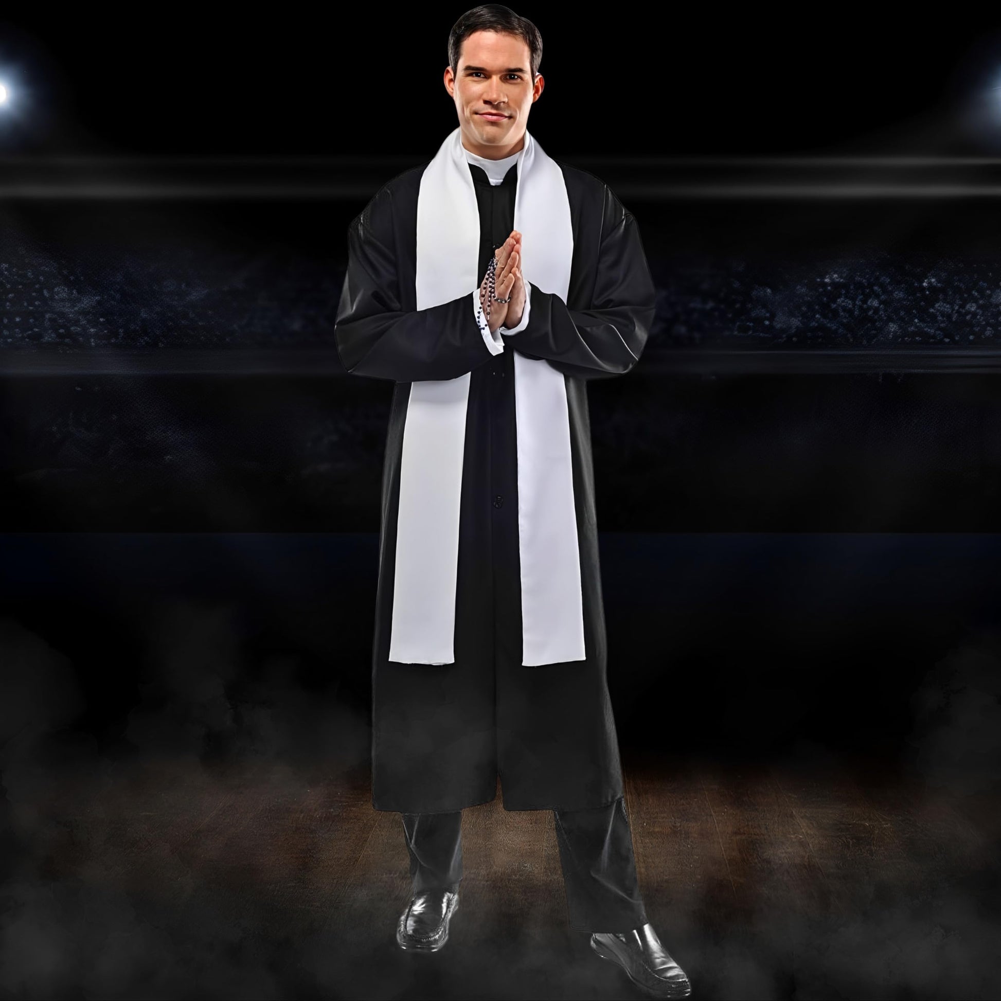• The Magic of Make-Believe: Transform into an inspiring Clergy member with this Adult Father Priest Costume! This complete look includes a long black robe with an attached white collar and a stole.