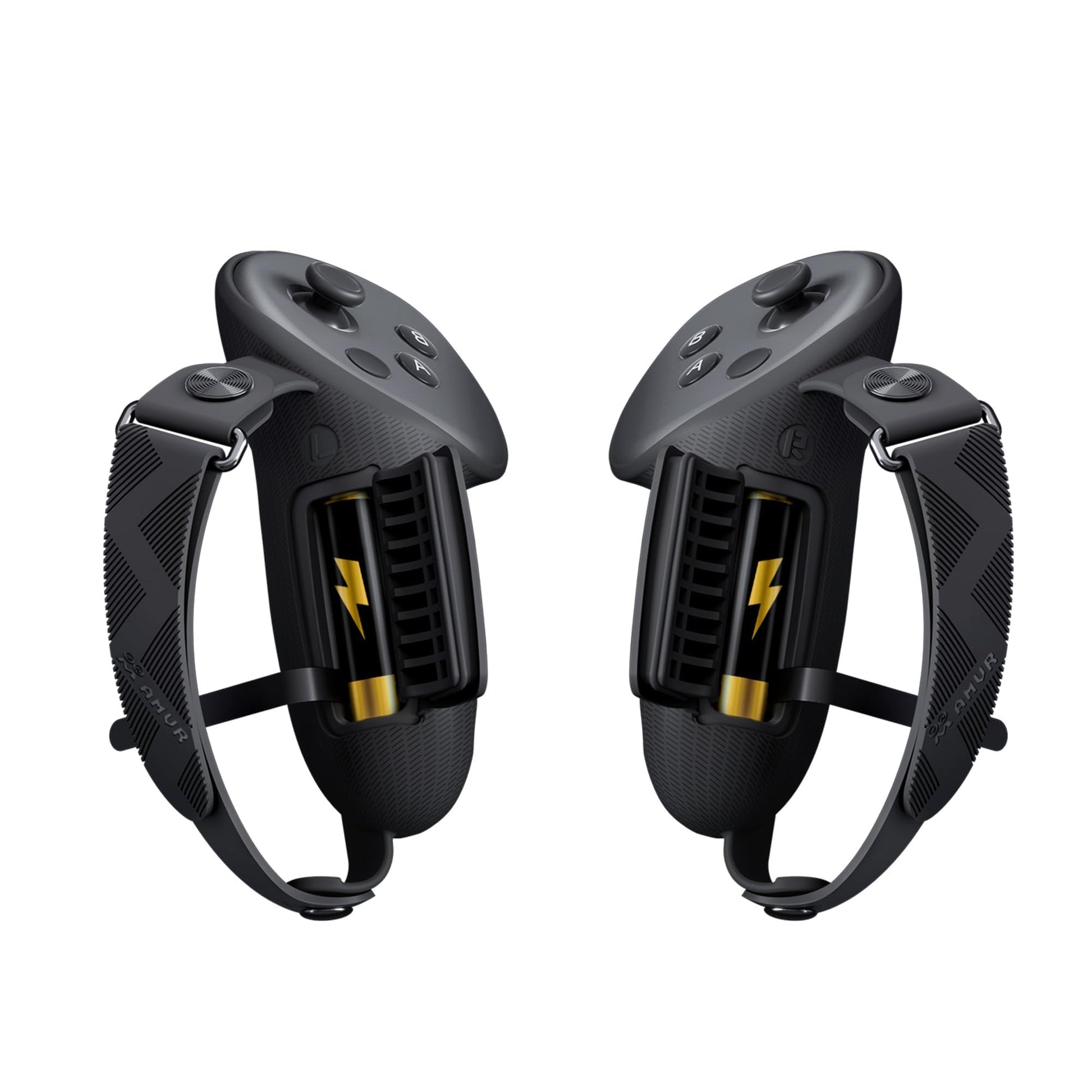 • Easy Installation and Removal: The one-piece design of the controller grip compatible with Quest 3 makes it easy to install and remove. The package included: 1 pair controller grip covers with knuckle straps, 1 pair battery compartment cover and 4 plastic battery pull tabs(Two of them are already mounted on the battery cover). Please Note: Batteries not included!