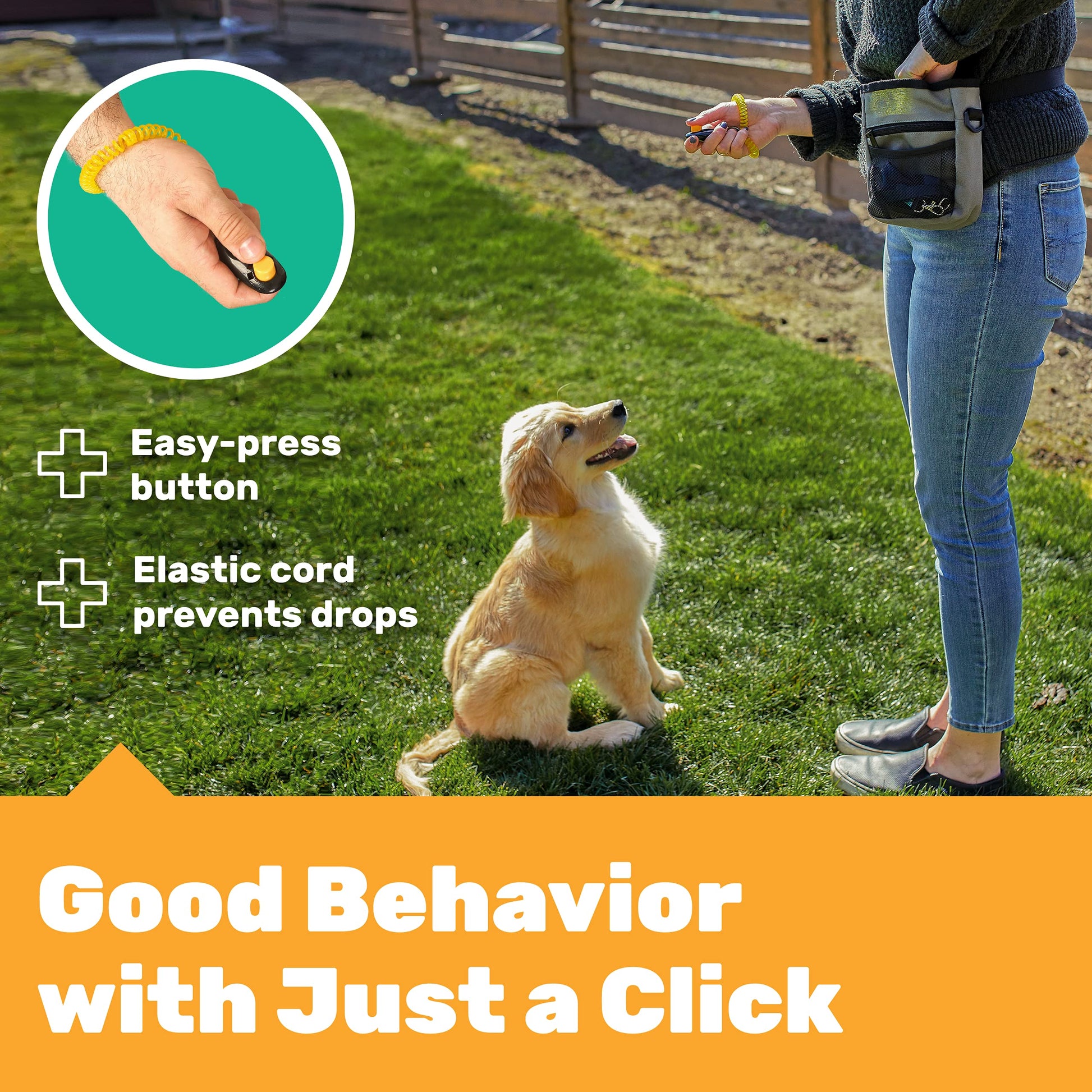 • 【Scientific dog training clicker】Comes w/ elastic wrist straps to prevent them from being dropped. Large Button presses easily and comes right back up without getting stuck. Ideal sound balance, not too loud nor too soft. Scientifically train your dog’s basic obedience, tricks, and correct bad behavior easily.