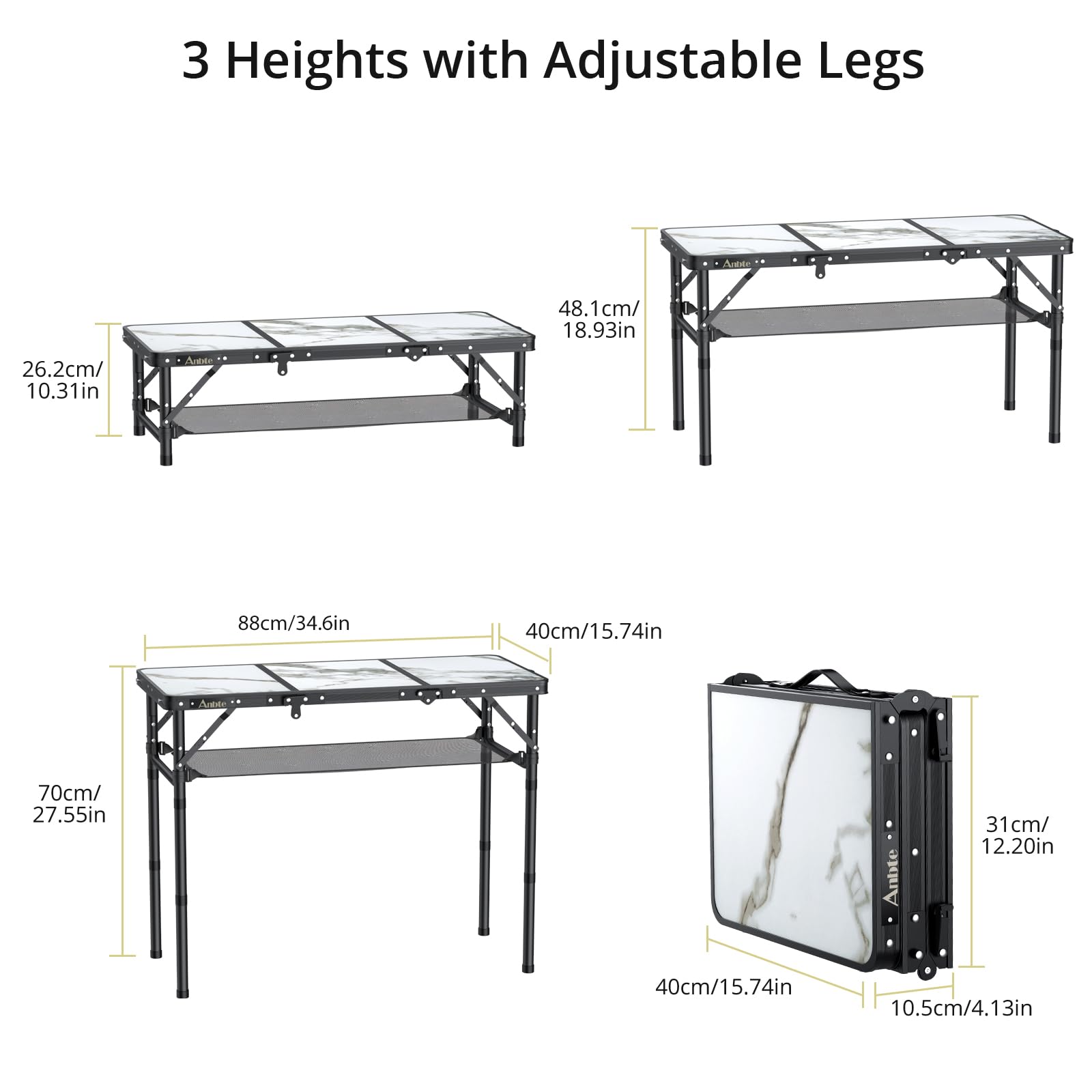 Anbte Folding Camping Table, Aluminum Small Folding Table 3 Adjustable Height Max 27.5", Portable Table with Carry Handle, Lightweight, for Outdoor Indoor Travel Camping Picnic BBQ, 34.6" x 15.7"