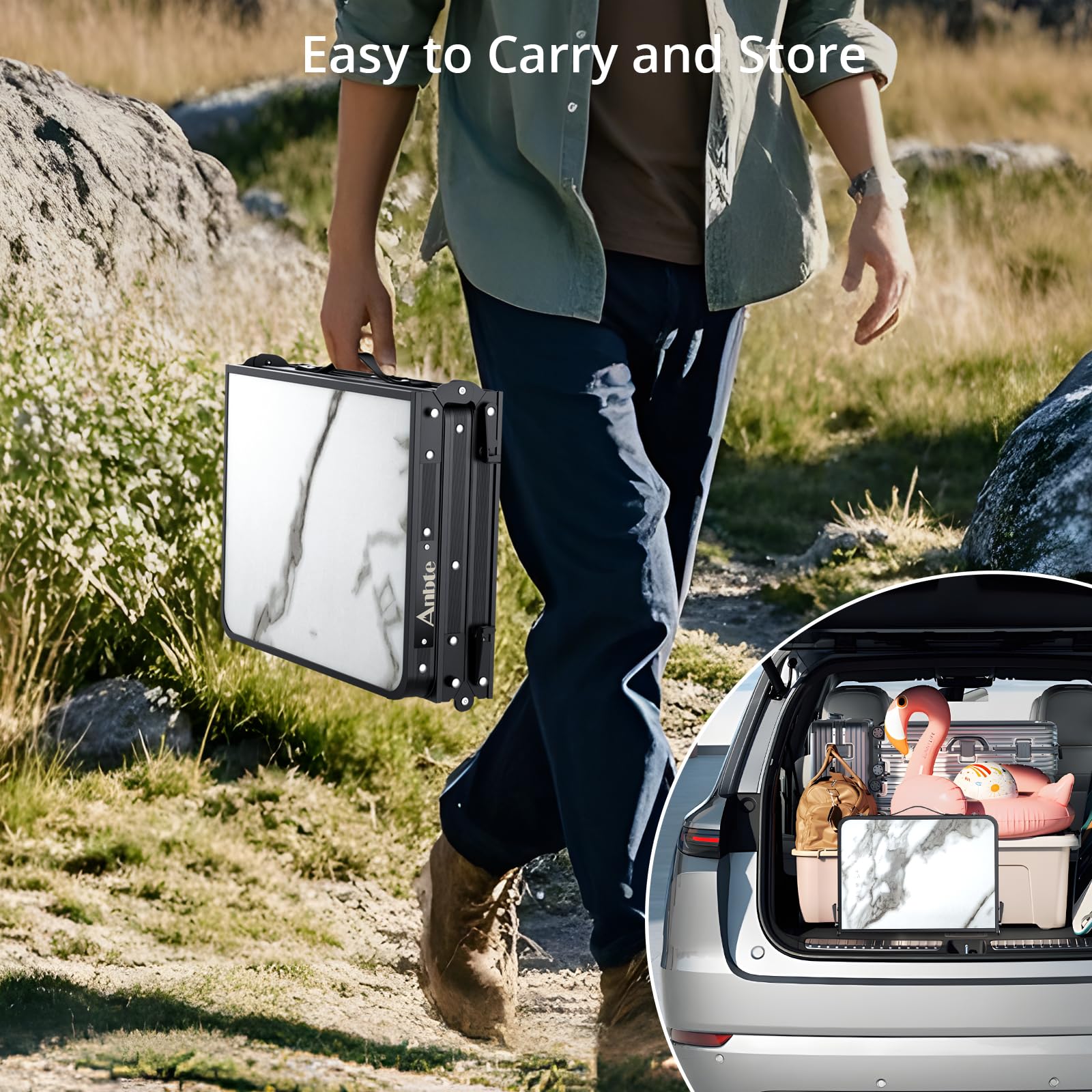 • 【Premium Quality Materials, Strong Load-Bearing】 Anbte portable folding table's frame is made of thickened aluminum alloy and can hold up to 66 pounds, making it extremely stable. It comes with a U-shaped frame and buckles for added stability and durability