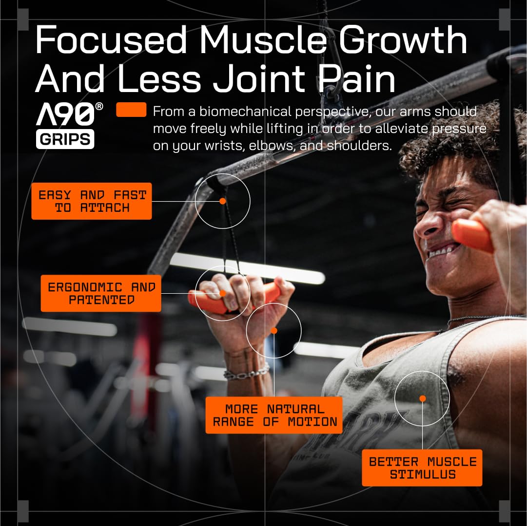 Angles90 Grips - The Original Gym Pull Up Grip Handles | Gym Handles - Lat Pulldown Attachments - Perfect Grips for T-bar Row, Cable Machine, D Handle - Grip Strength Trainer - Gym Equipment - Lat Bar