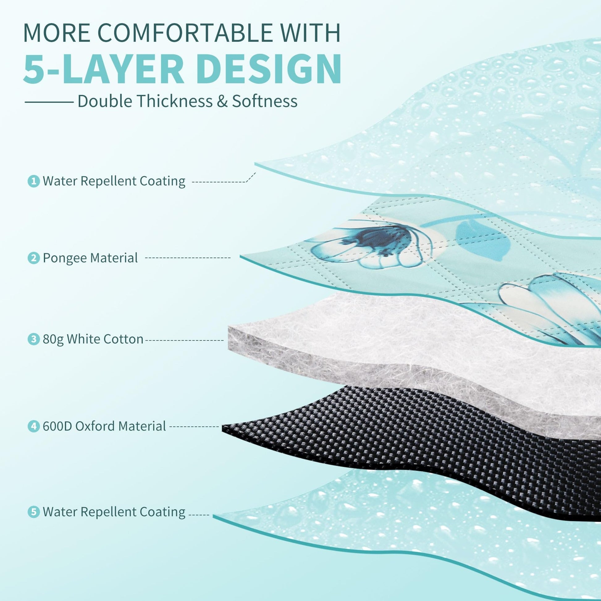• 【Durable, Soft, and Comfortable】 Designed for tough outdoor environments, the top pongee and bottom oxford material ensure durability. Meanwhile, the white cotton filling and additional coatings provide extra softness and comfort for sitting or lying down.