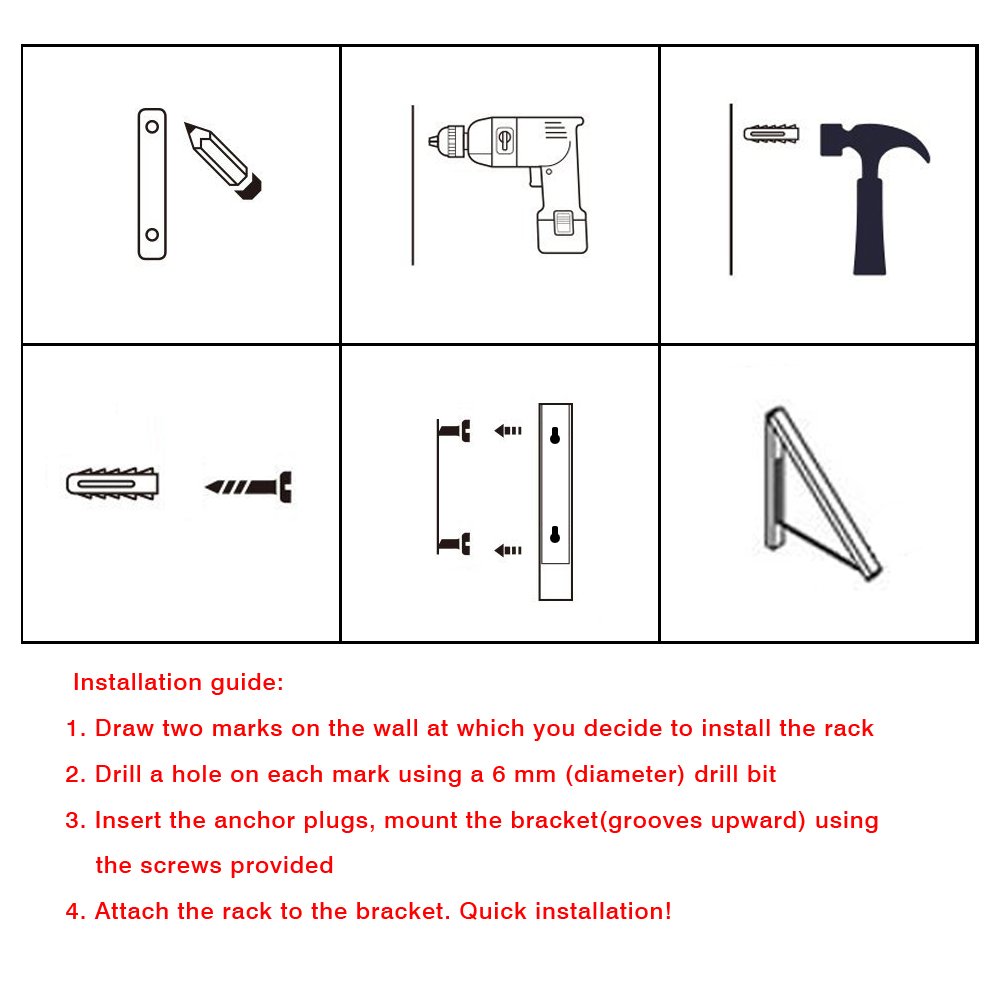 • Easy to open and easy to fold away. When you open the coat wall rack, it can gives you about 10 inches of space to hang clothes. When the rack is closed its dimensions are very compact and sleek-looking, and you can open it when your guests arrive. Finally you can call lot of friends for a party and test your new foldable coat rack!