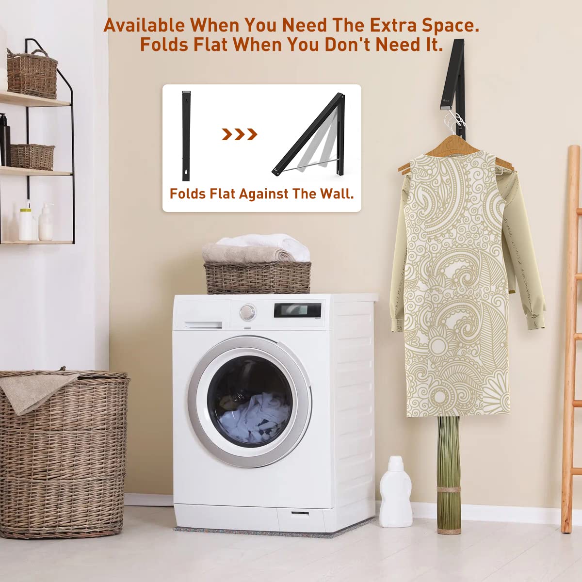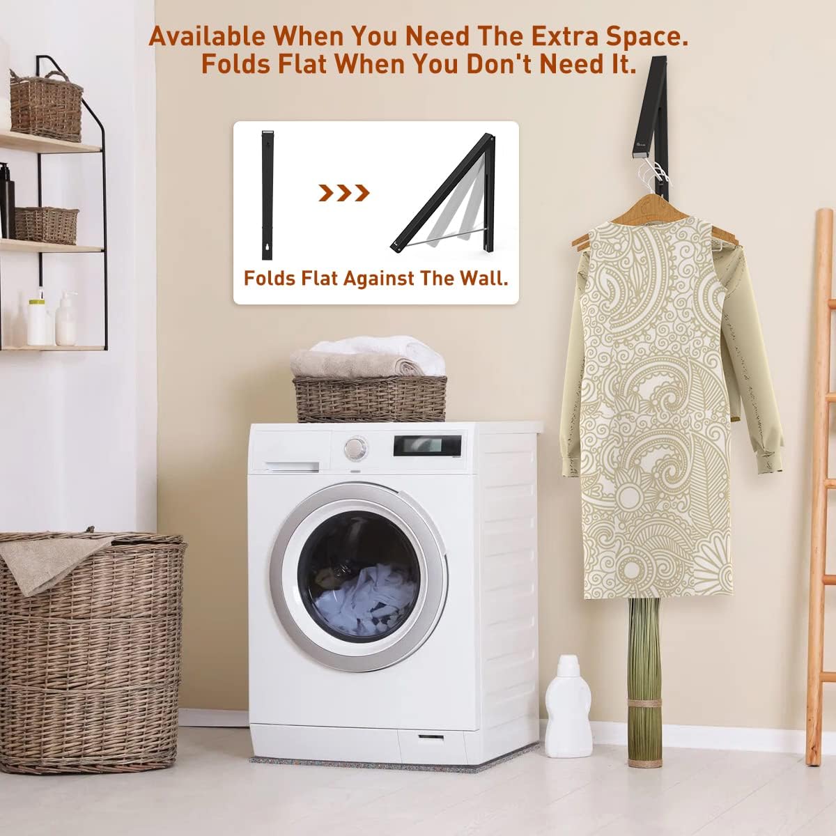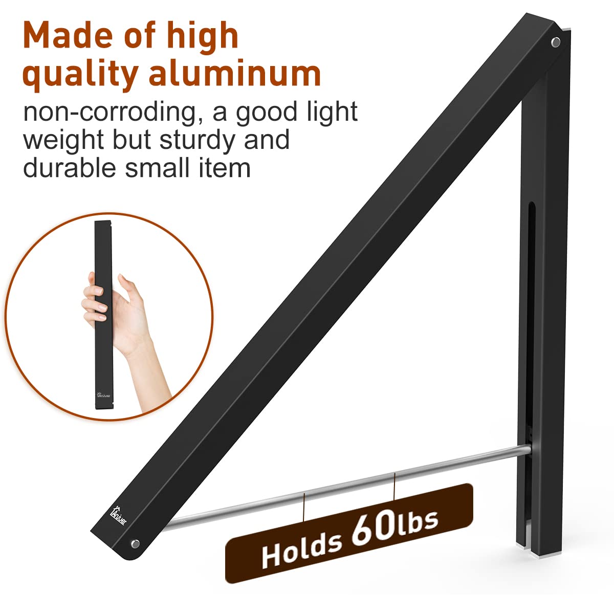 Anjuer Retractable Clothes Rack - Wall Mounted Folding Clothes Hanger Drying Rack for Laundry Room Closet Storage Organization, Aluminum, Easy Installation (Black)