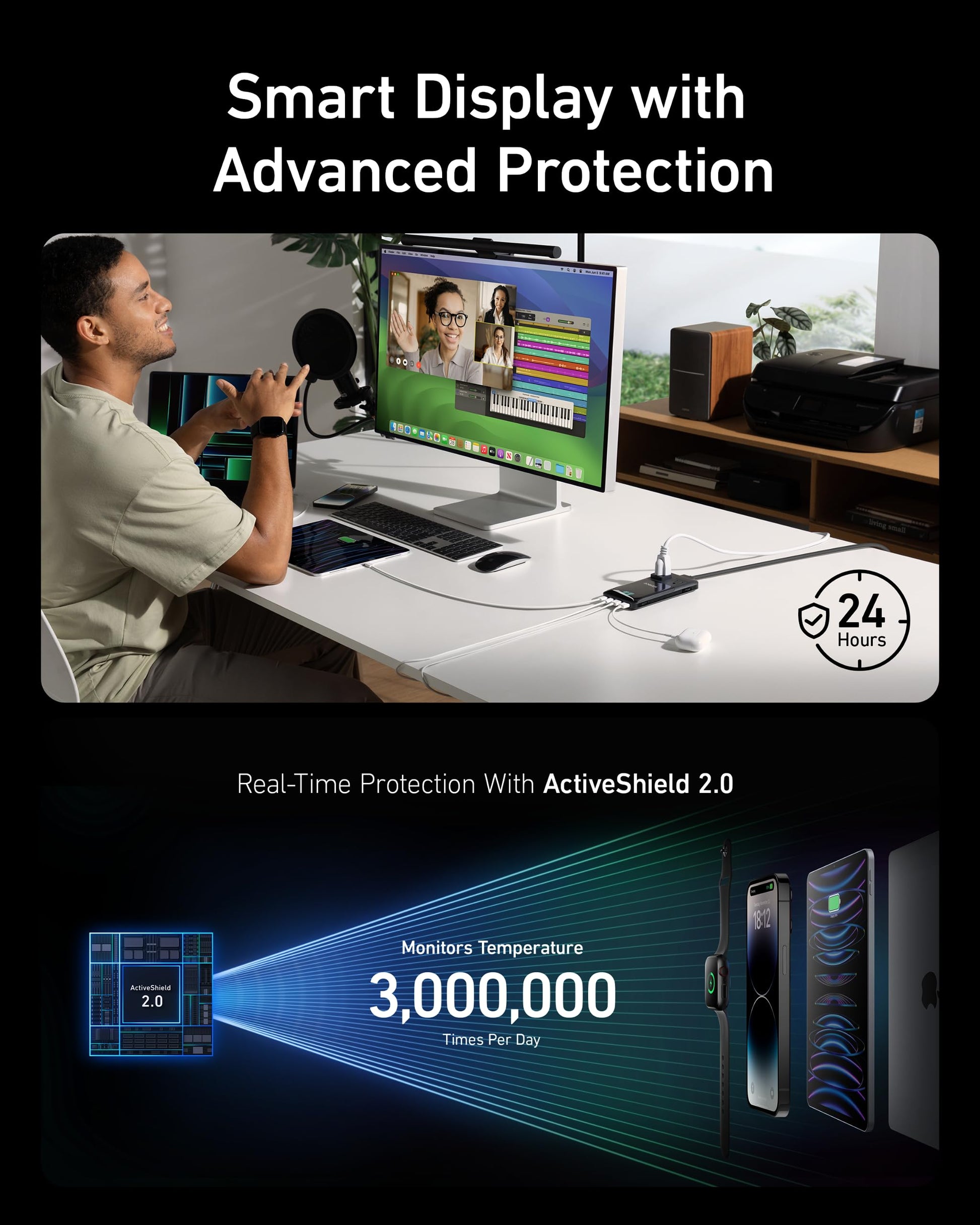 • Stay Informed and Protected: Monitor and protect your devices with the smart display's real-time data monitoring, while ActiveShield 2.0 technology offers up to 3 million daily checks for superior protection. Please note that the screen will only light up when the product is connected to the power supply.