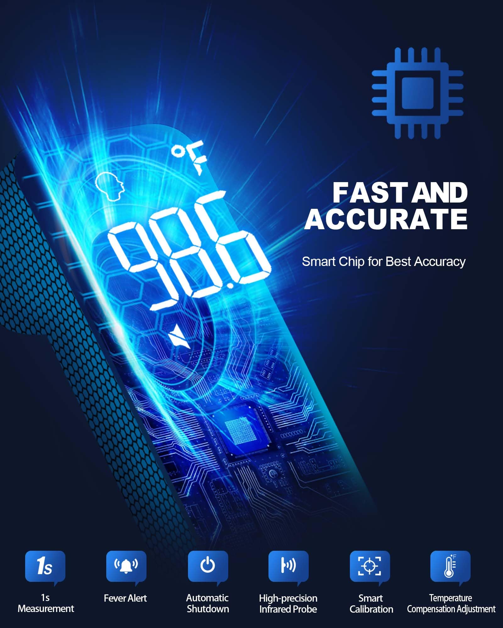 • Reliable and Accurate Measurements: Our forehead thermometer undergoes rigorous clinical testing, ensuring it is a fast and highly reliable device for temperature readings. Specifically designed for forehead use, it boasts a tiny error margin, making it an ideal choice for precise measurements.