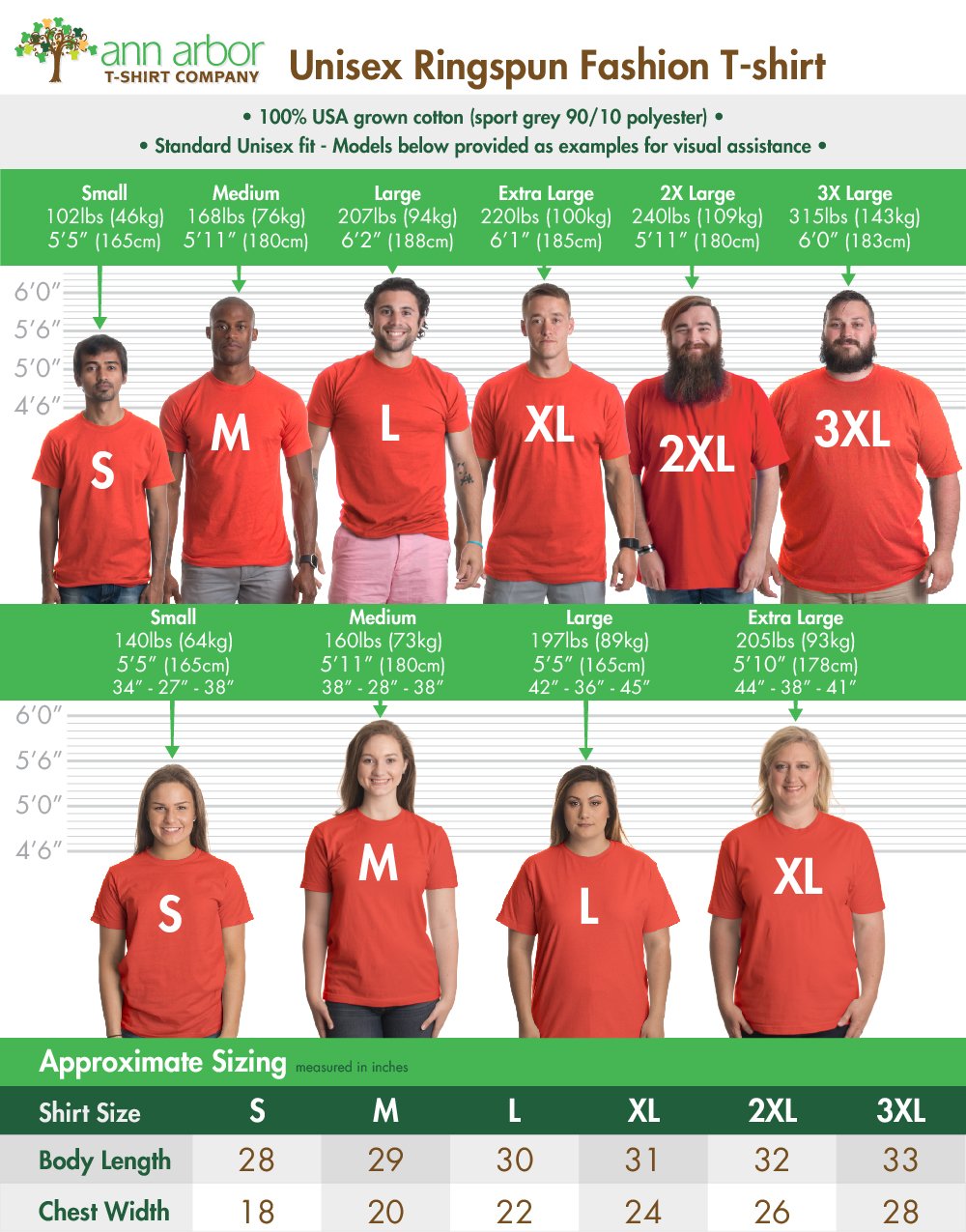 • UNISEX MODERN FIT SIZING | this shirt is slightly tapered to be a little less boxy than the old style of mass-market t-shirt. Nothing drastic, and most people wear the same size in our shirts as they do in all of their others, but you might go one size larger if you're on the fence. It is pre-shrunk, but like any high-cotton product, will still shrink slightly in the wash. Our model photos are the real thing - the actual shirt on our salesguy, Rich. He's 6' 2', 200 lbs and wearing a large
