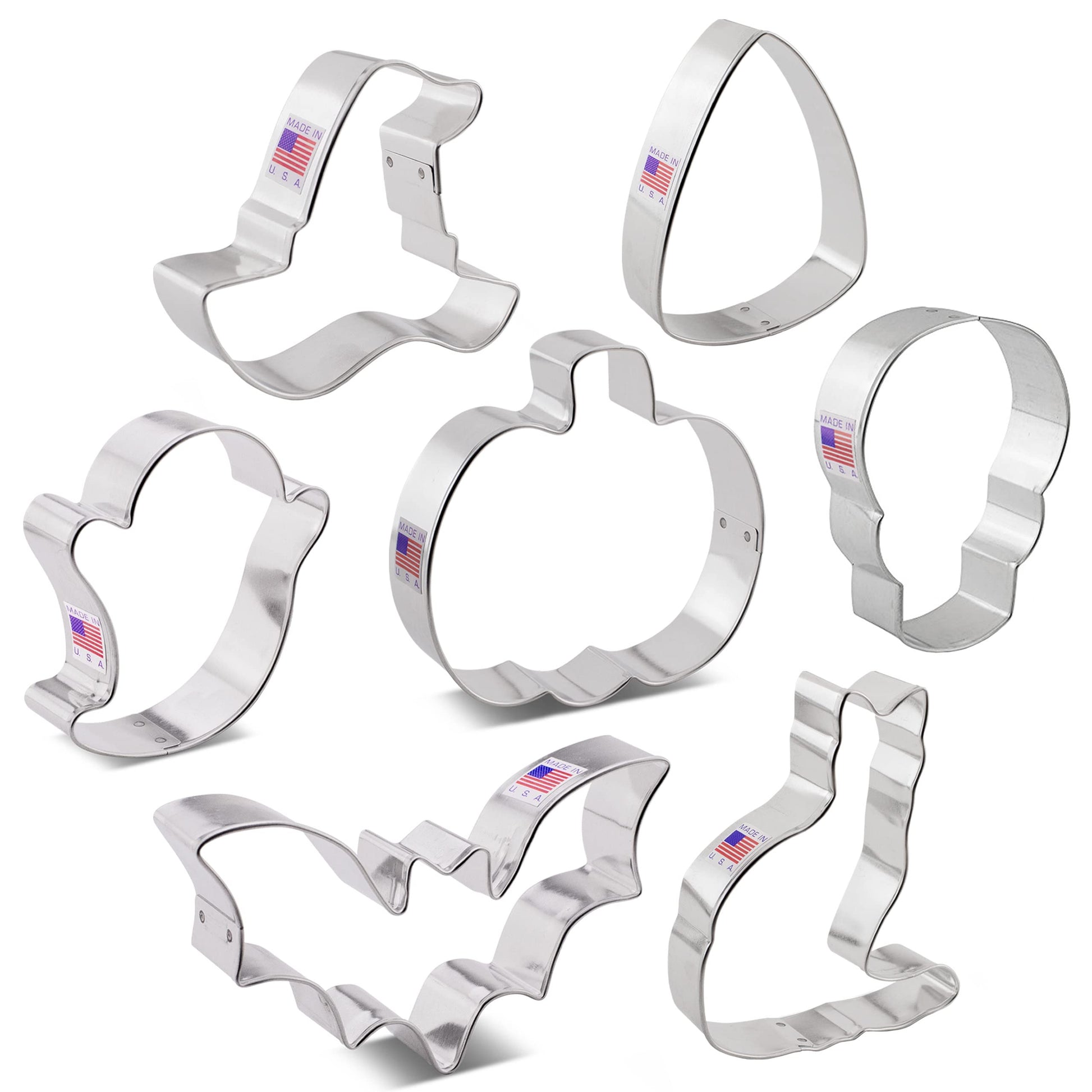 Ann Clark Cookie Cutters Halloween Cookie Cutters 7-Pc. Set Made in USA, Pumpkin, Ghost, Bat, Candy Corn, Skull, Black Cat, Witch Hat