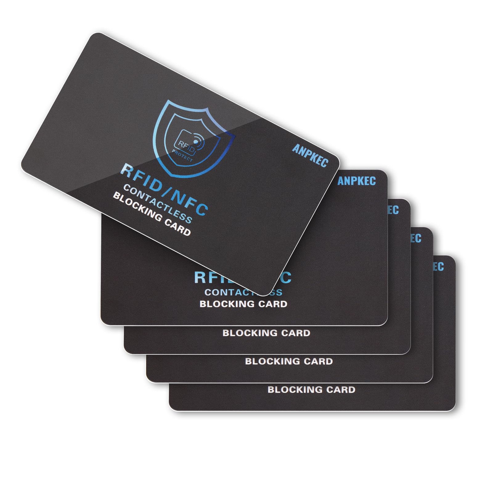 ANPKEC RFID Blocking Card, Contactless NFC Debit Credit Card Passport Protector for Men&Women, One Card Protects Entire Wallet/Purse, 5 Pack