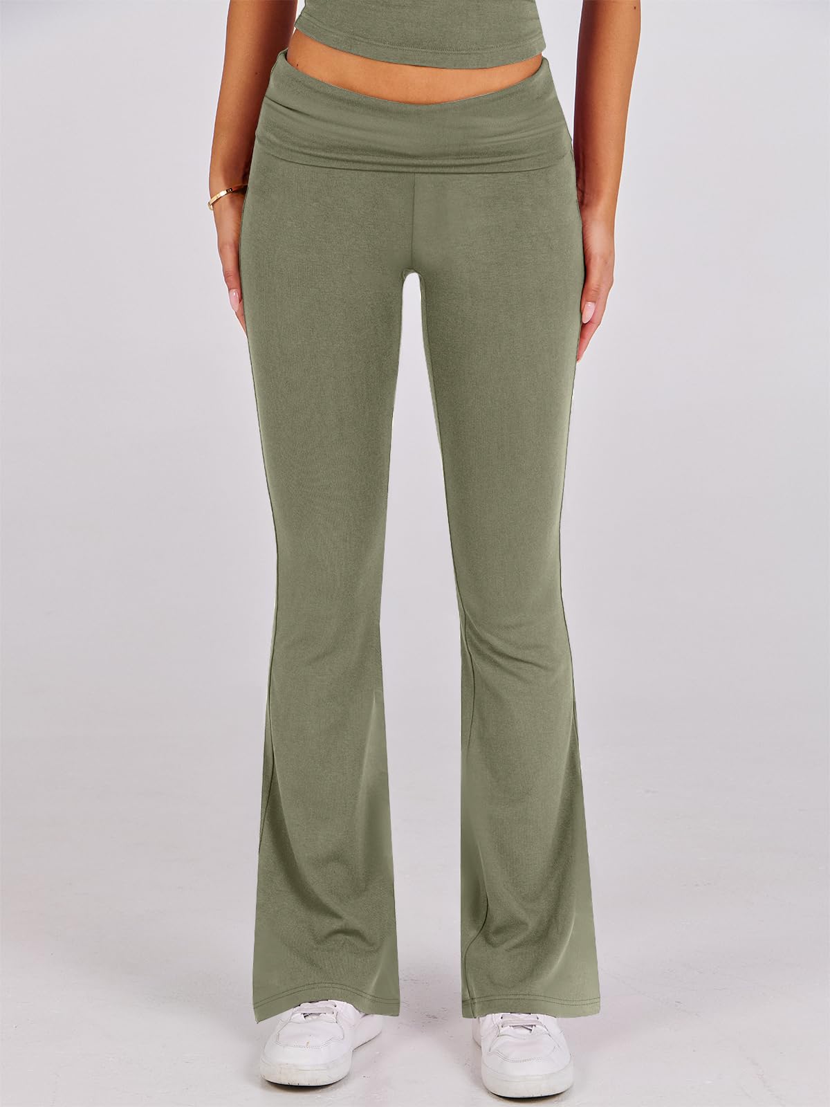 ANRABESS Lounge Sets for Women 2 Piece Foldover Yoga Flare Leggings Pants Crop Tops Casual Y2K Outfits Matching Tracksuit Set Olive Small