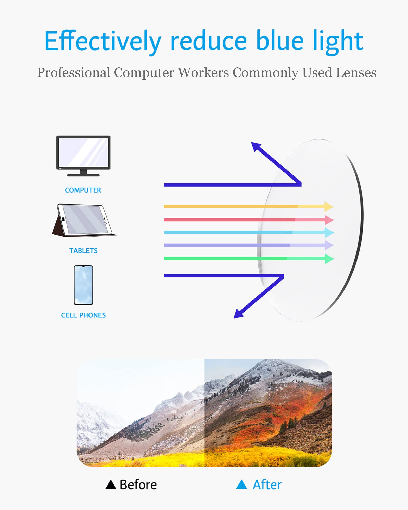 • Effective Blue Light Protection: Designed to protect your eyes from harmful blue light, these glasses utilize advanced technology to filter out the blue light emitted by digital screens. By reducing eye strain and fatigue, they promote comfortable and healthier screen time.