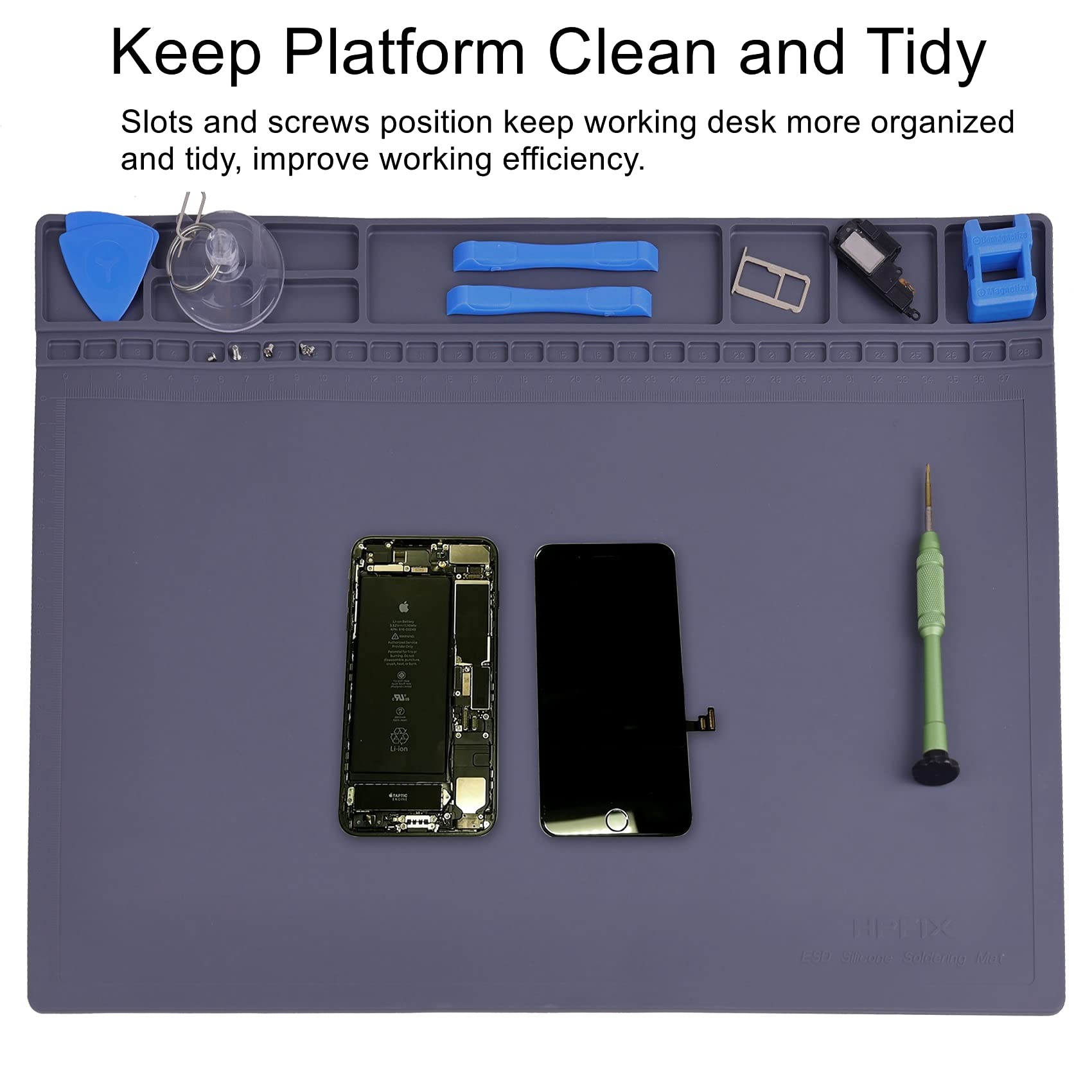Anti-Static Mat ESD Safe for Electronic Includes ESD Wristband and Grounding Wire, HPFIX Silicone Soldering Repair Mat 932°F Heat Resistant for iPhone iPad iMac, Laptop, Computer, 15.9” x 12” Grey