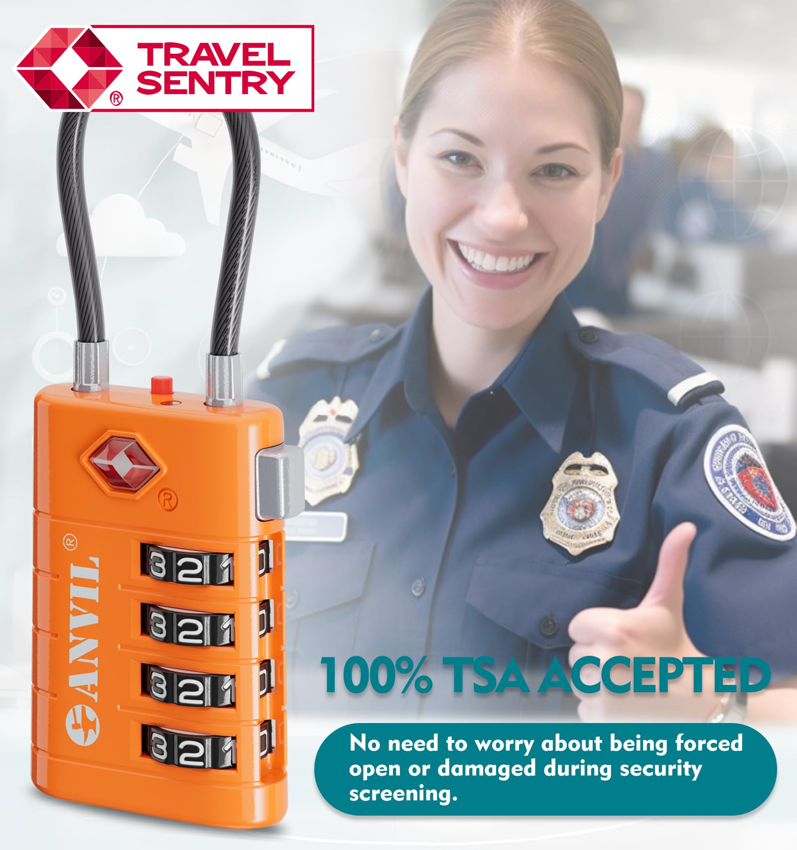 ANVIL 4 Digit Luggage Locks, TSA Locks for Luggage, Advanced TSA008 core, Alert Indicator for Your Travel Lock, Suitcase Lock. (4, Orange)