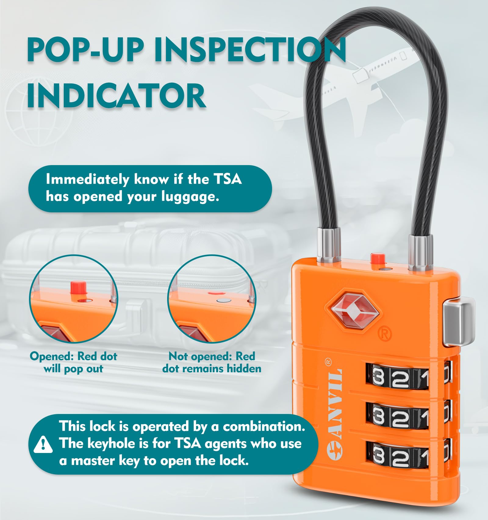 ANVIL Luggage Locks - TSA Approved, Advanced Core, Alert Indicator. Great Suitcase & Backpack Lock for Travel & Daily Use (2, Orange)