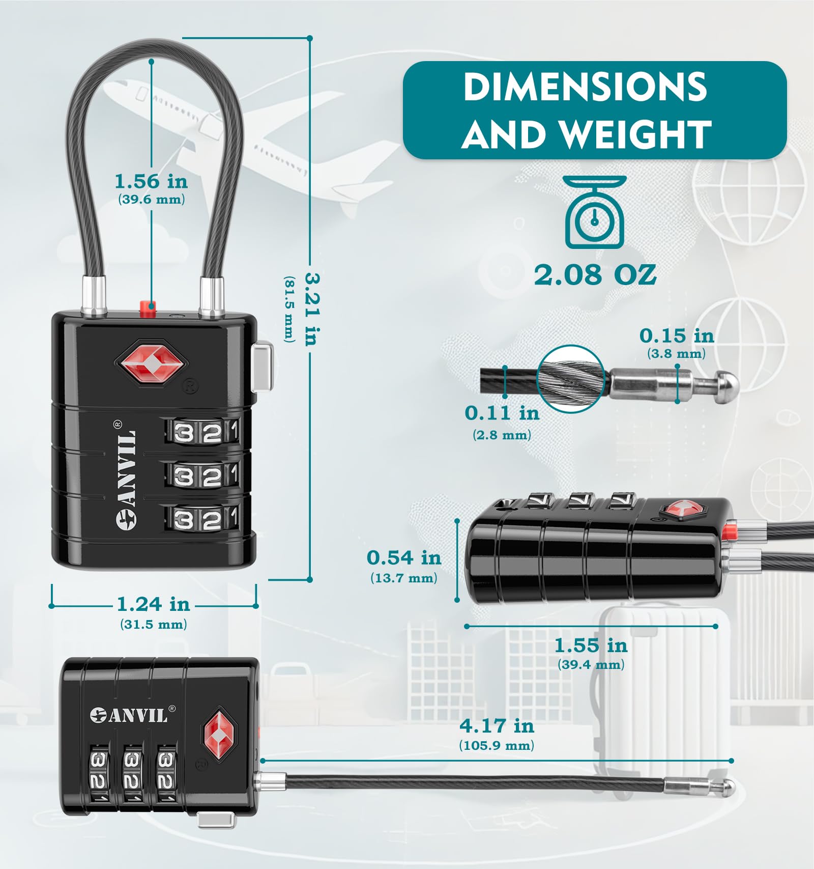 • ★ Easy-to-Set Personal Combination: The ANVIL Luggage Lock is designed for ease of use, featuring an easy-to-read dial for quick and accurate combination setup. As one of the top TSA-approved suitcase locks, it ensures no errors while setting your personal code.