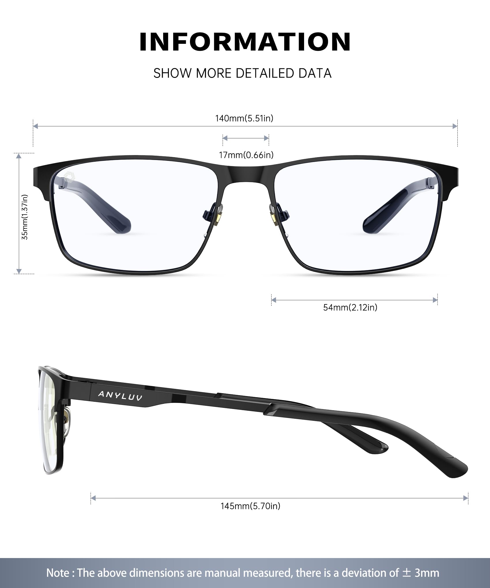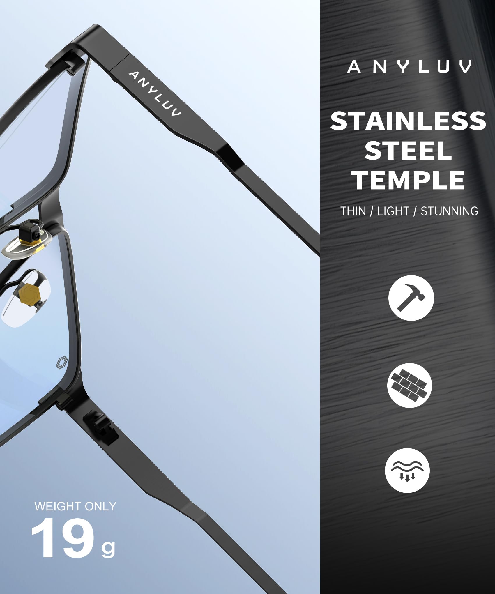 • Modern & Masculine Look: ANYLUV blue light glasses combine functionality with a sleek, modern aesthetic. The versatile design complements any outfit, making them perfect for work or casual wear.