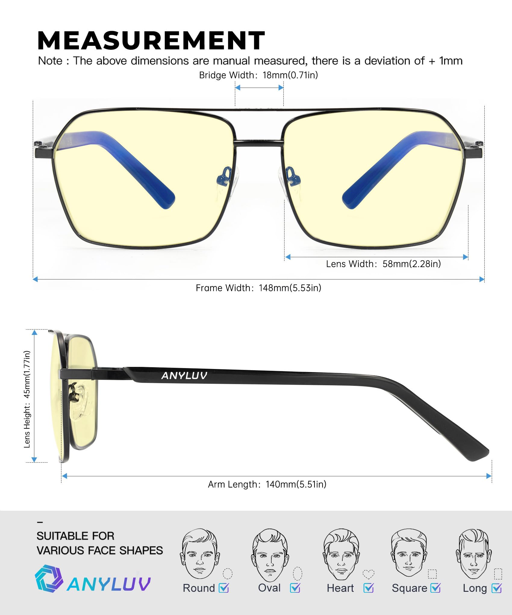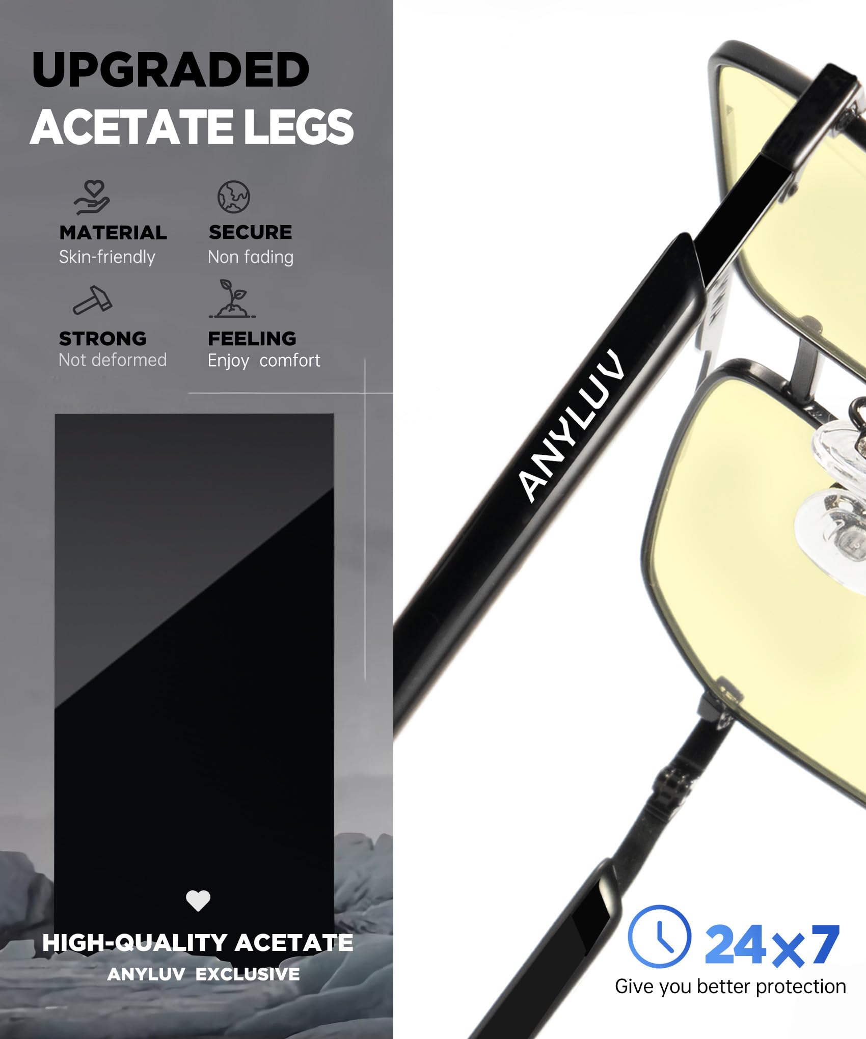 • 💻Trendy Blue Light Glasses⏩ Designed with square slim frame and ANYLUV logo decor temple, very exquisite and fashion style. These anti blue light glasses help show a sophisticated look that complement any outfits, whether you're working or casual daily life