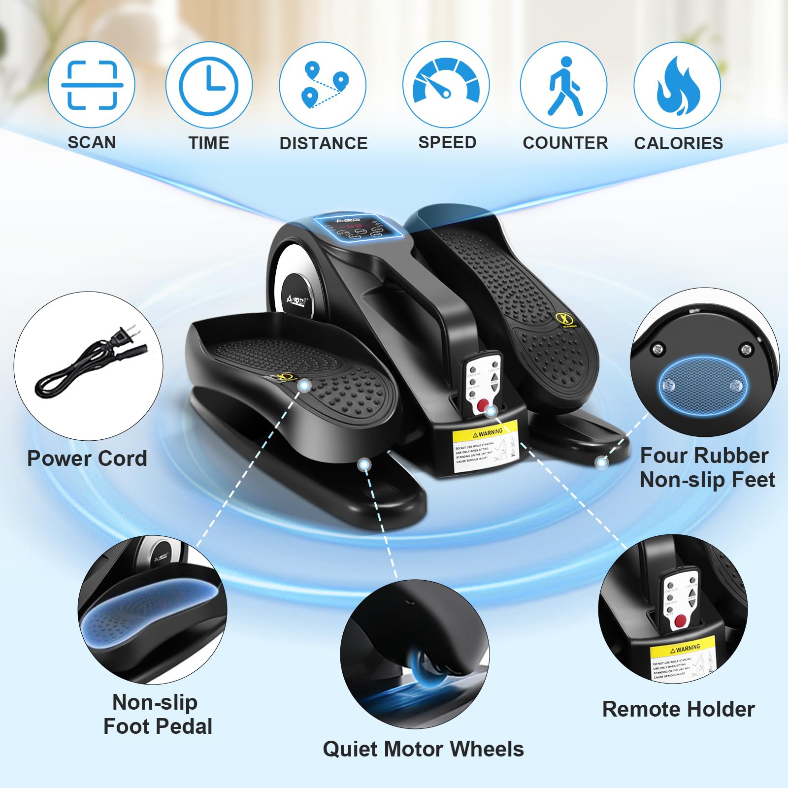 AODI Under Desk Elliptical Machine, Ellipse Leg Exerciser for Seniors Adults, Adjustable Speeds Elliptical Trainer with Remote Control, Quiet & Portable Mini Seated Pedal Exerciser for Home Office Use
