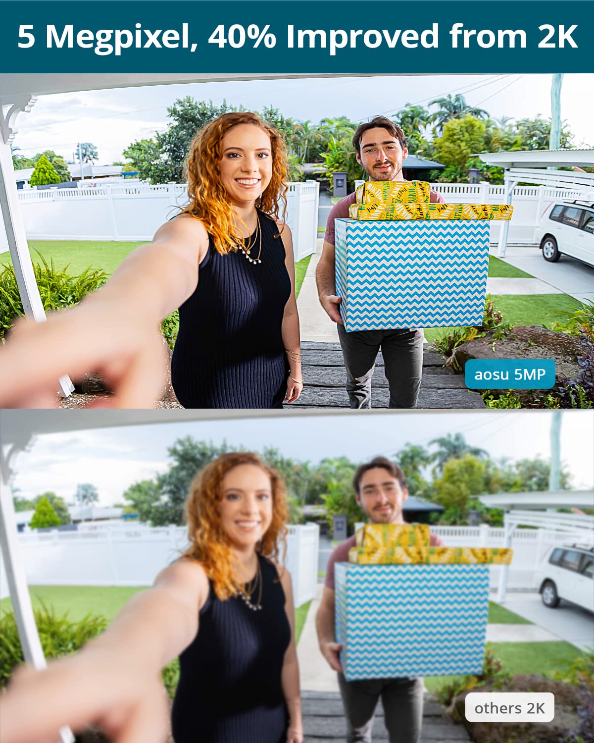 • 5MP UHD, 40% Improved From 2k: Adopted 7 pieces of an advanced ultra-clear optical glass lens ensures you get sharp, detailed images even in low-light or bright conditions.