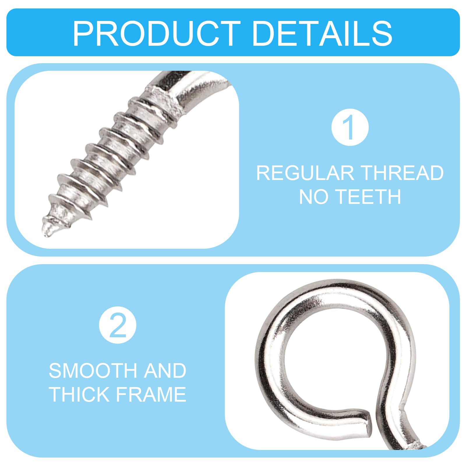 • 【Easy to Install】These stainless steel eyelet screws are sturdy and easy to screw in with a pilot hole. They go in wood smoothly and take up a little room.