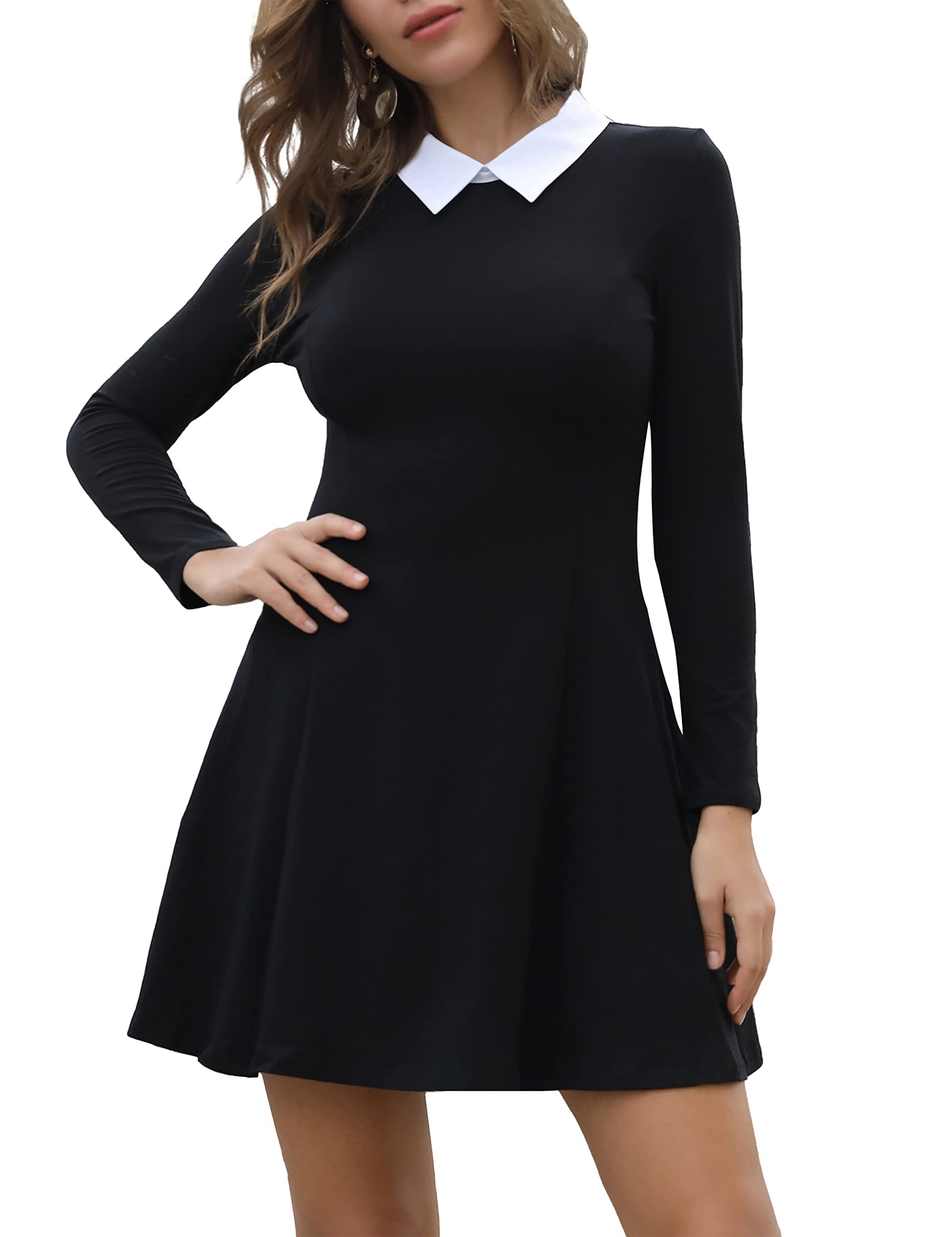 Aphratti Women's Long Sleeve Fall Dresses 2025 Casual Peter Pan Collar A Line Fit and Flare Skater Goth Dress Black Small