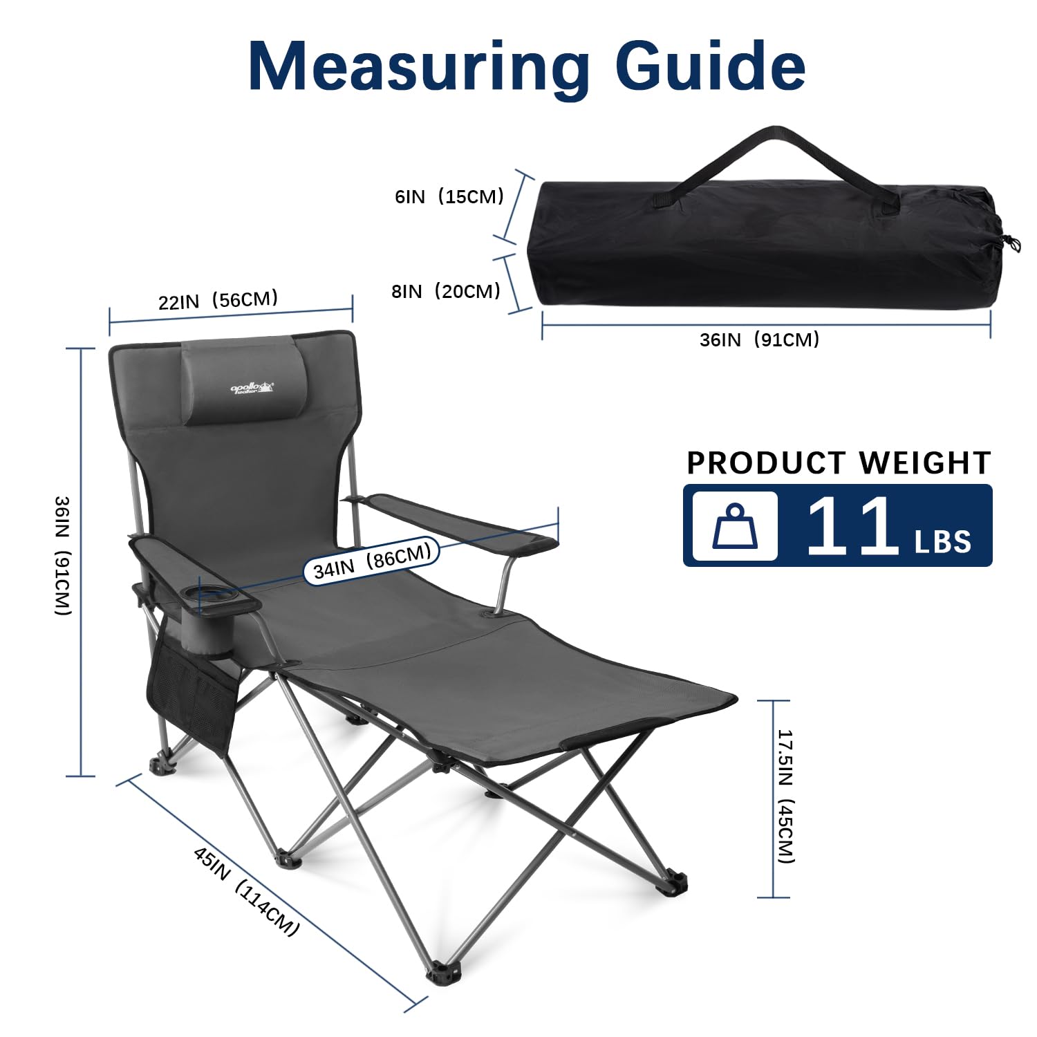 • Convenient Storage and Portability: This beach lounge chair can be instantly set up or folded without requiring assembly, making it easy to use. The folded size is only 35.5 x 6 x 8 inches, and it weighs only 11 pounds, making it very convenient to carry. The chair comes with a storage bag, simplifying your travel preparations and ensuring you are ready for a pleasant hike. Wherever you go, it provides ultimate comfort.