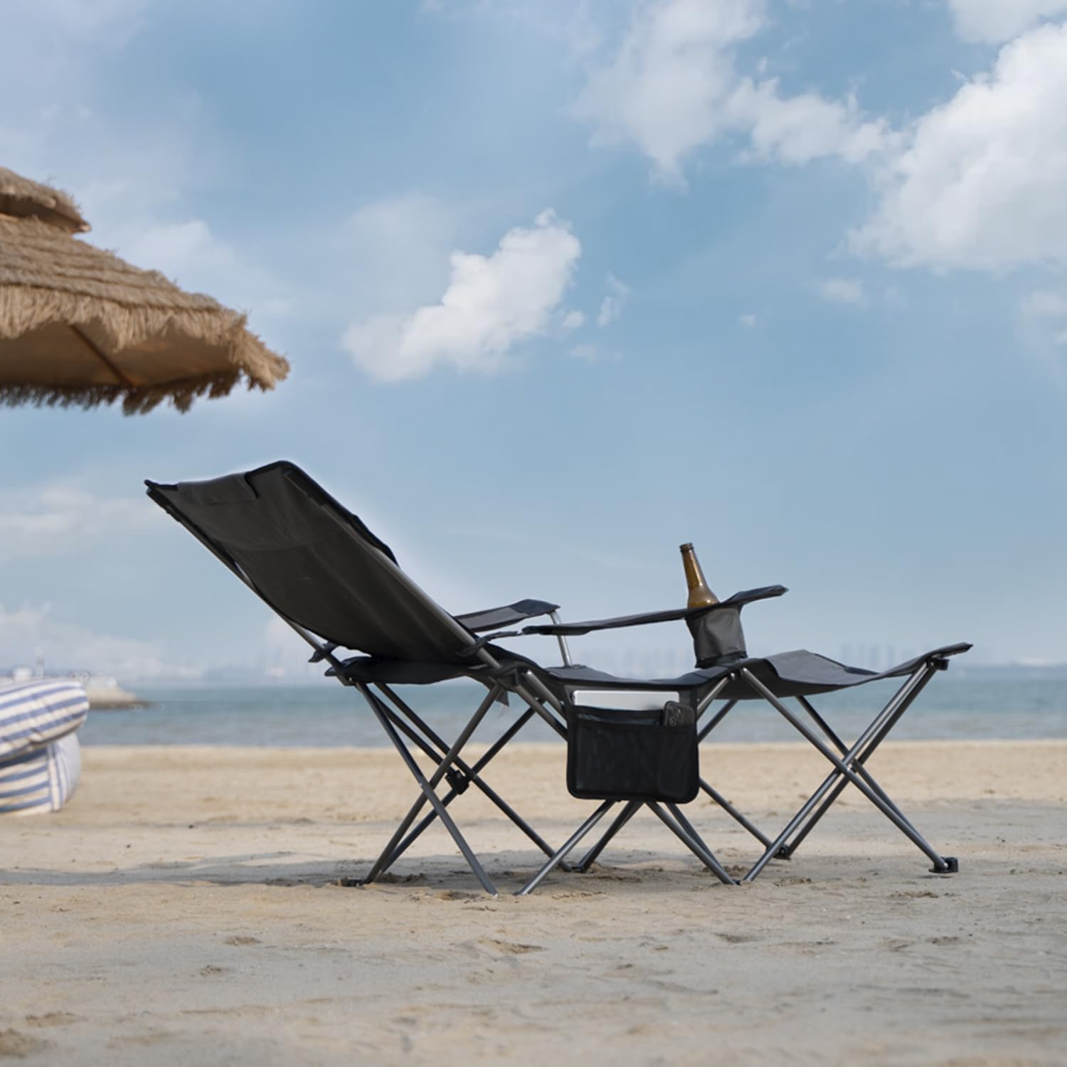 • Ergonomic Design: The adjustable reclining backrest design provides stable and comfortable support for your back and legs. This reclining camping chair features a 90-135° adjustable backrest, offering optimal support for your back and legs, ensuring you experience ultimate comfort. Additionally, you can adjust the backrest angle as needed to achieve a more comfortable posture. (Please refer to the video, images, or click 'See more product details' to view the specific adjustment methods.)