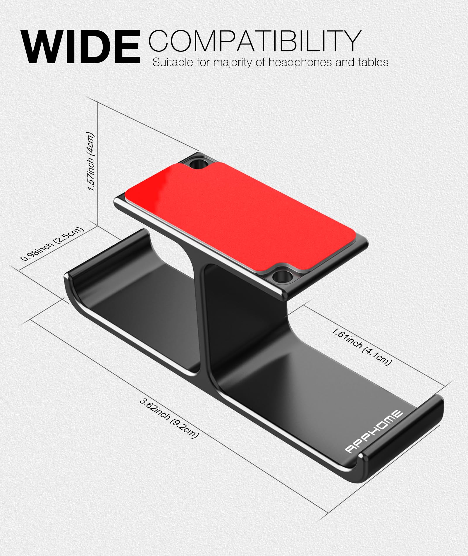 APPHOME Headphone Hanger Stand Under Desk Hook Aluminum Stick-On Adhesive Dual Headsets Holder Mount PC Gaming Accessories for All Headphones