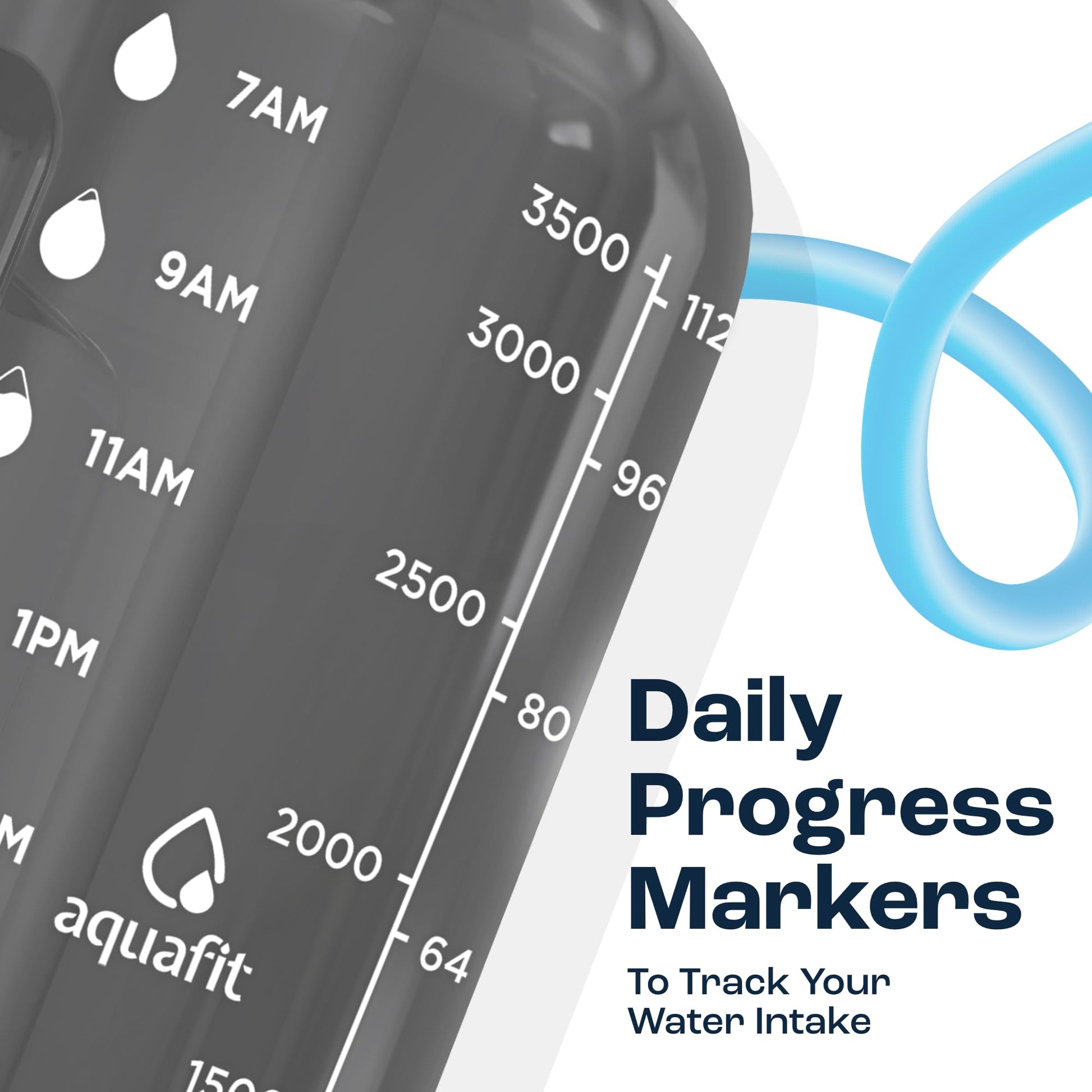AQUAFIT 1 Gallon Water Jug with Time Marker - BPA Free 128 oz Gym Water Bottle with Straw, Handle, Gray