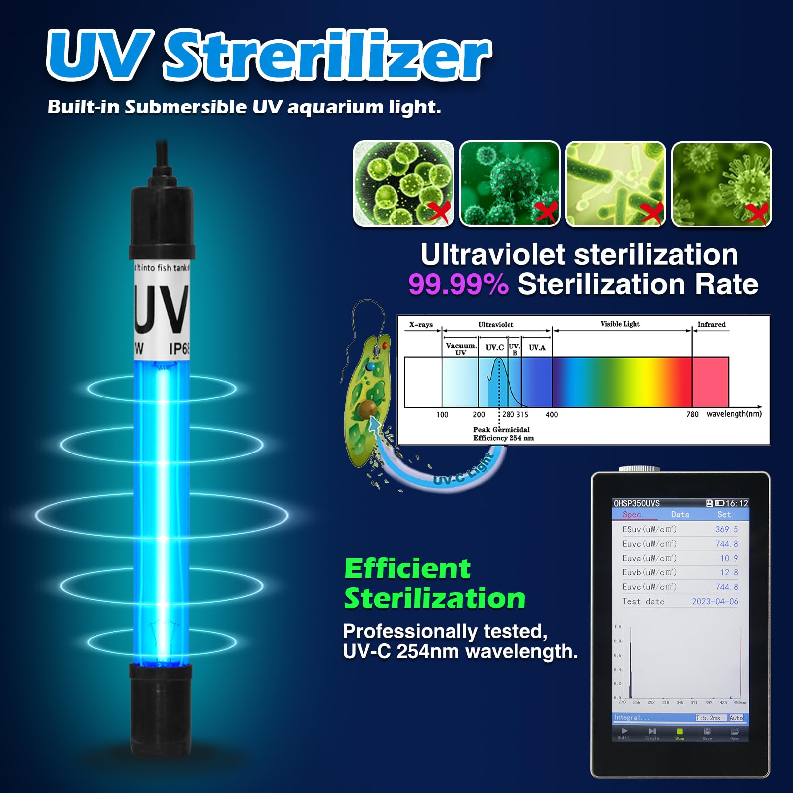 • SEPARATE SWITCHES - Control the water pump and fish tank light separately. When you only want to use the aquarium filter function, you can turn off the fish tank U-V light separately.