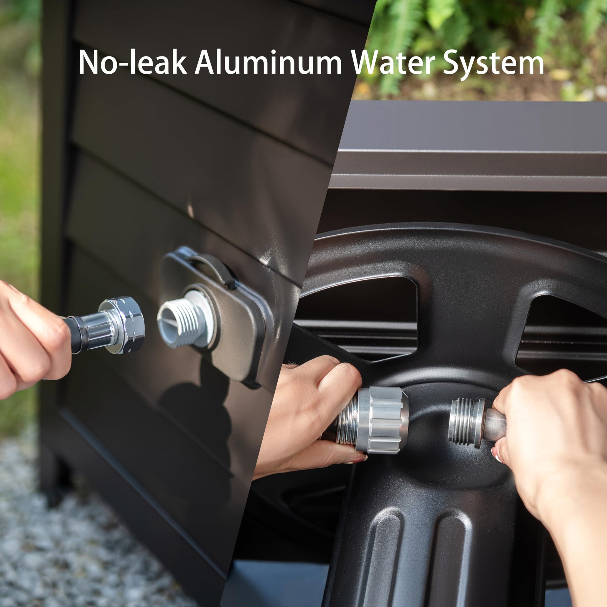 • [No-leak Aluminum Water System]: 8 times stronger than plastic, Aluminum Threads won't strip, and won't freeze, crack, or corrode.