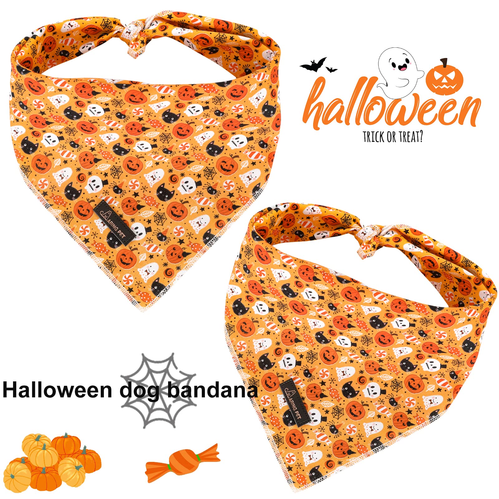ARING PET Halloween Dog Bandanas, Cotton Orange Pumpkin Ghost Cat Pet Bandanas Cute Triangle Bibs Scarf for Small Medium Large Boy Girl Dogs and Cats-L