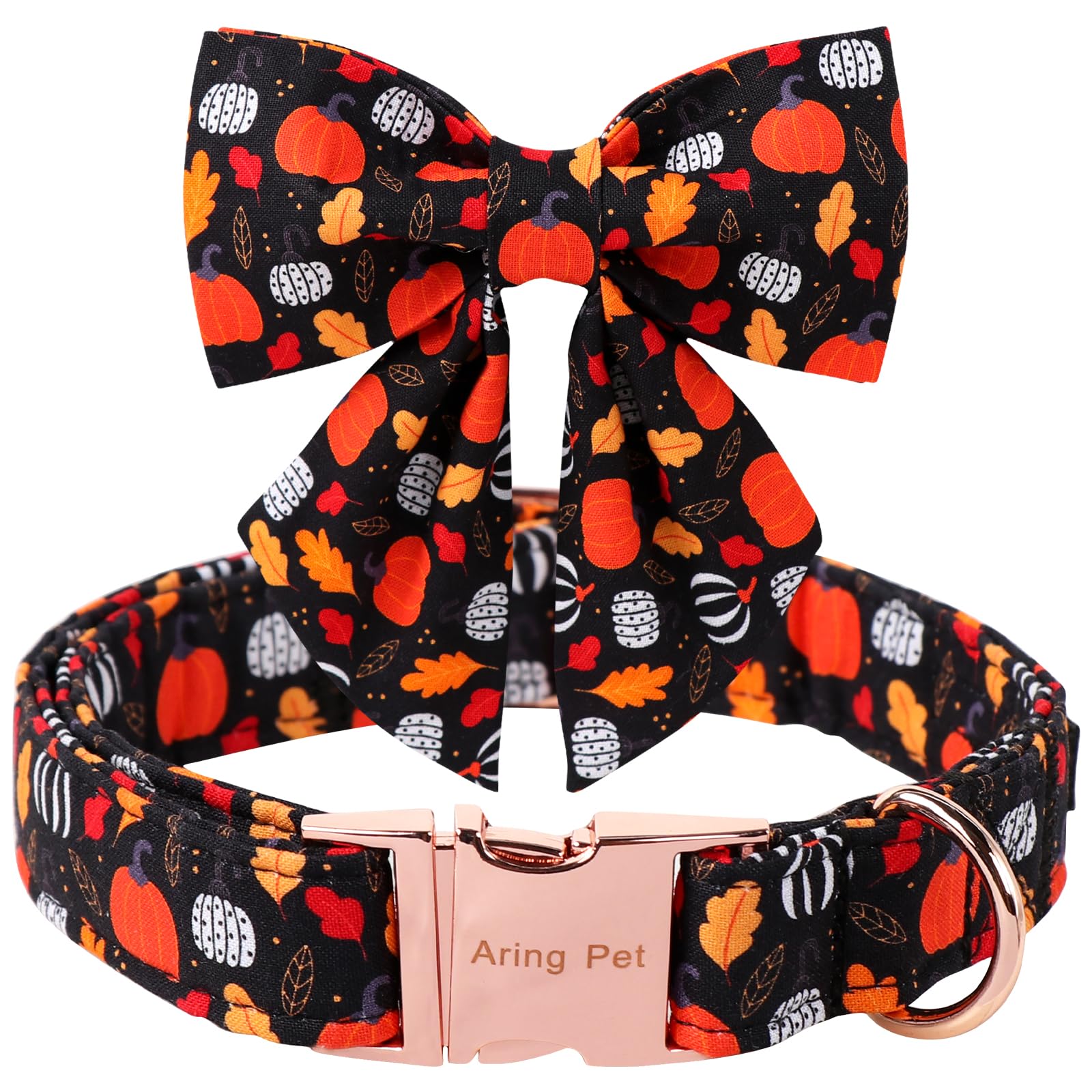 ARING PET Halloween Dog Collar with Bow, Cotton Autumn Black Pumpkin Orange Sailor Bowtie Collars with Metal Buckle for Puppy Small Medium Large Girl Boy Dogs Pets-S