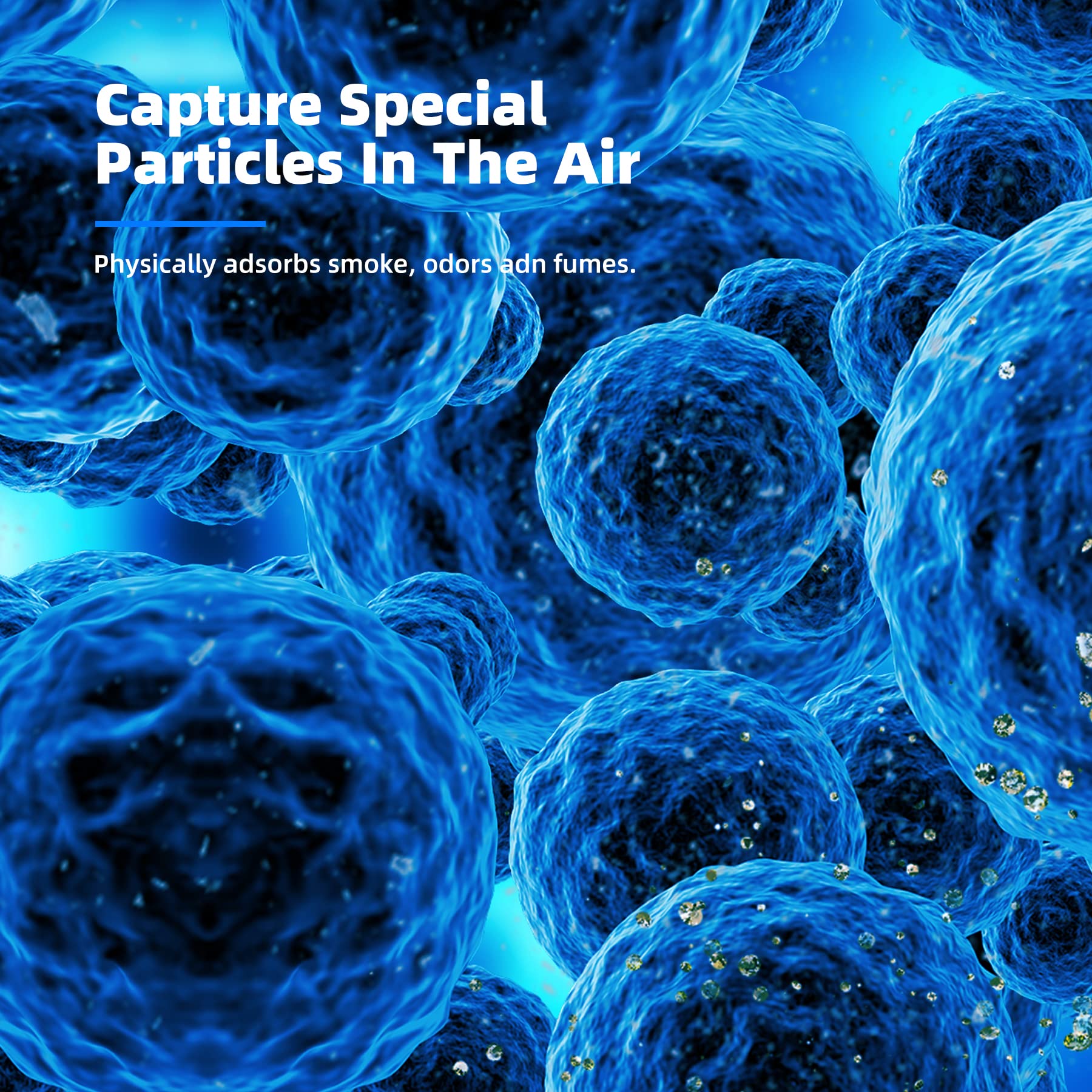 • Prevent Clogging: When hairs, dander, and other large particles meet the pre-filter layer, they will be blocked outside to prevent the air purifier from clogging.