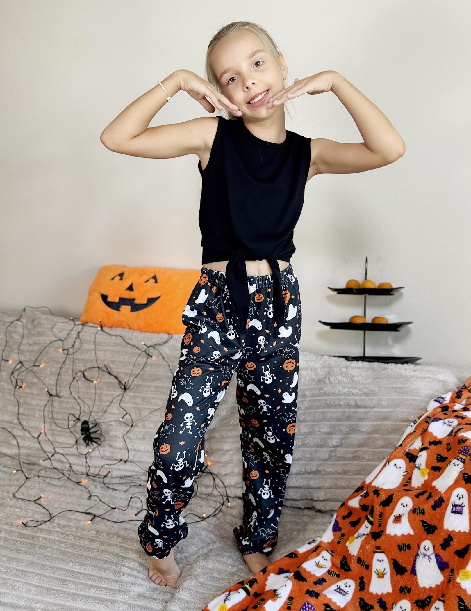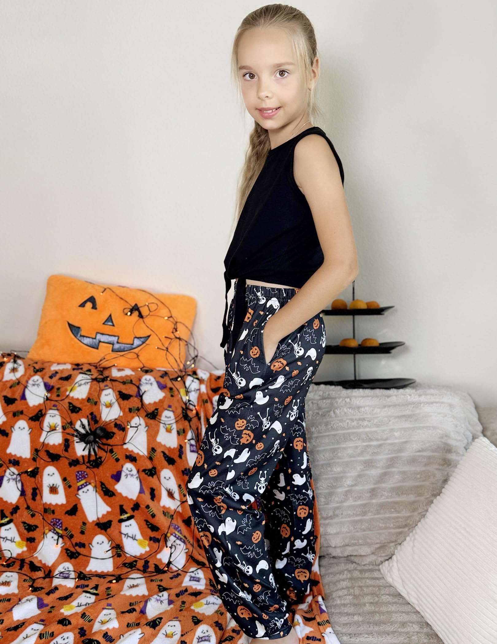 Arshiner Girls Pajama Pants Kids Plaid Pj Pants Comfy Lounge Sleepwear Bottoms with Pockets Black Halloween 11-12 Years