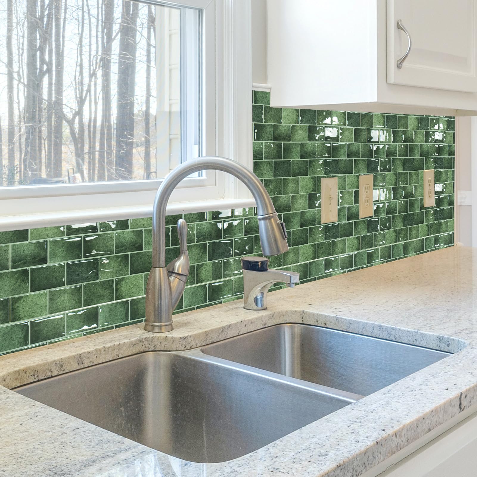 Art3d Peel and Stick Backsplash Tile Green for Kithchen Bathroom Laundry Room Stove RV, 20-Pack of 12 x 6" Self-Adhesive Vinyl Stick On Subway Tile