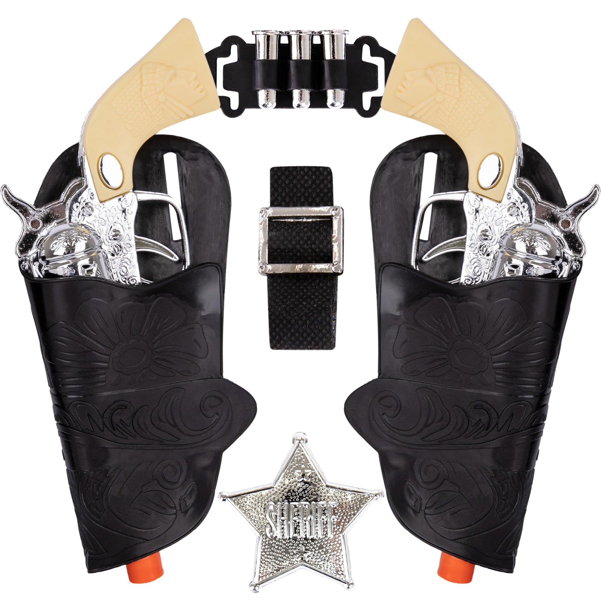 ArtCreativity Cowboy Toy Gun Holster and Belt 9 Piece Set for Kids. 2 Toy Pistols, 1 Sheriff Badge, 2 Gun Holsters, and 3 Play Bullets, 1 Adjustable Belt, Old Western Action Belt for Sheriff