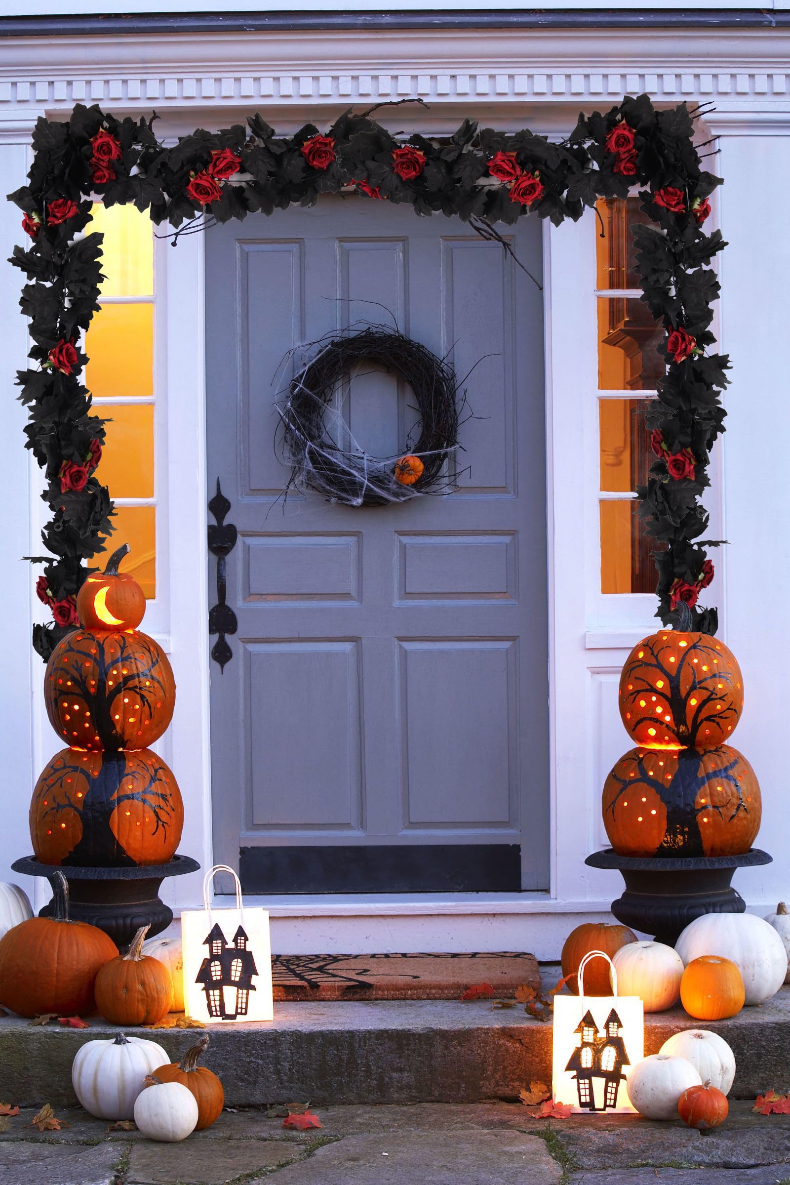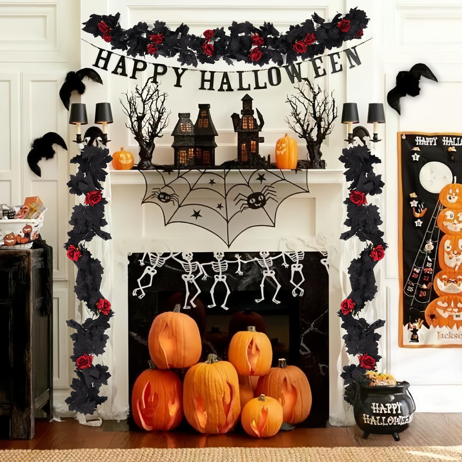• 【Material of Black Rose Garland】:The maple leaves are made of quality plastic and silk cloth leaves ,Also the leave texture is clear that look like real leaves, the garland stems are made of flexible plastic. The black maple leaves can present a mysterious atmosphere, ideal choice to complete the Halloween decoration.