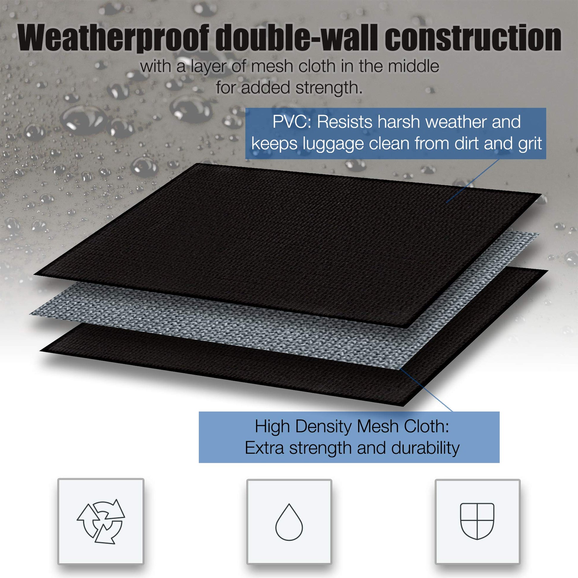 • ENHANCED DURABILITY; 100% WATERPROOF: While other rooftop carrier bags let in water through the zipper or quickly wear out, we’ve designed ours using triple-layer waterproof tarpaulin that weathers rain, wind, grit, or heat, and fitted it with a zipper flap that helps keep your items 100% dry.