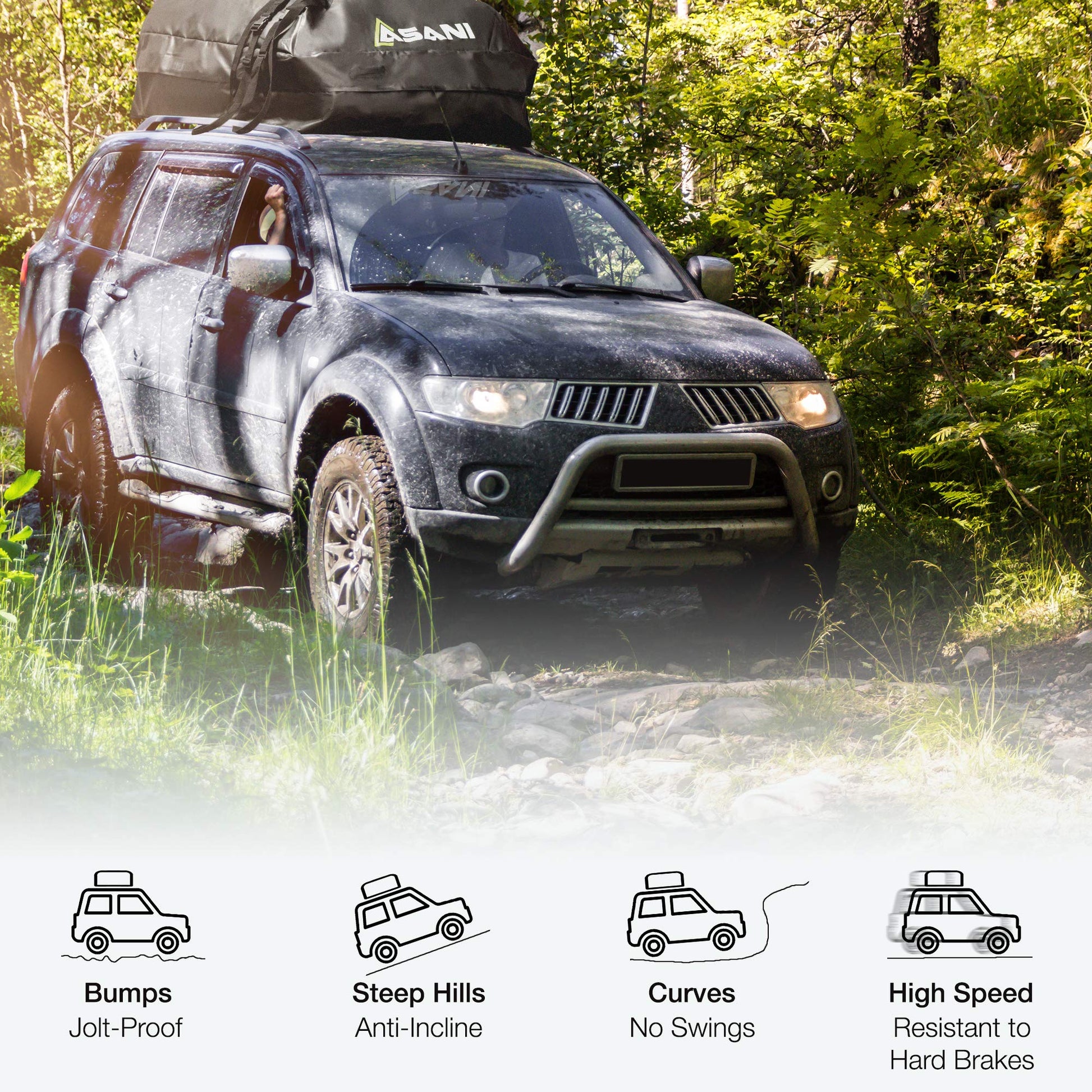 Asani Waterproof Car Roof Top Cargo Carrier Bag with 8 Heavy-Duty Straps and Buckles | Weatherproof Luggage Roofbag for Rooftop Racks | Car Topper Bag for Sedan, SUV, Vans & More (15 Cubic Feet)