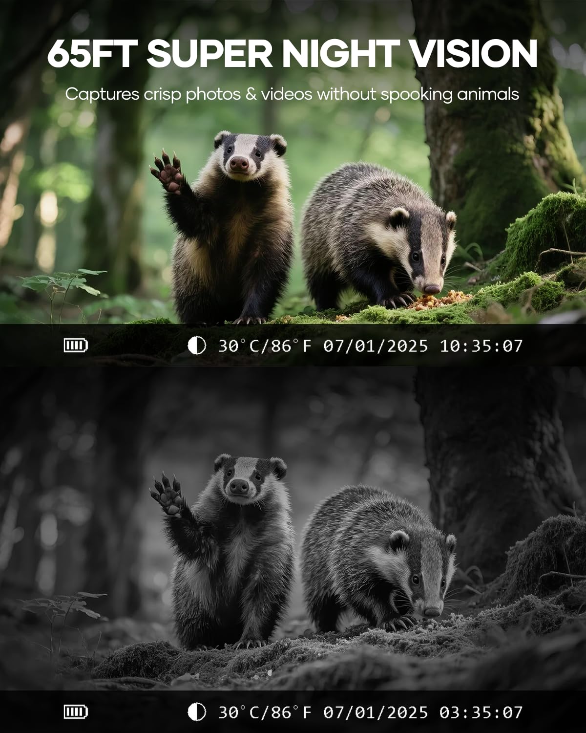• 【Efficient Solar Powered Trail Camera】 Equipped with a large solar panel and rechargeable Lithium battery, offering you the best value in solar trail camera and hunting equipment. Not only ensure continuous operation with extended autonomy, but also saving money and protecting the environment. Plus IP66 waterproof performance and premium materials, even in extreme weather, like rainforest or deserts, remain fully functional. Provide an ideal solution for outdoor use.